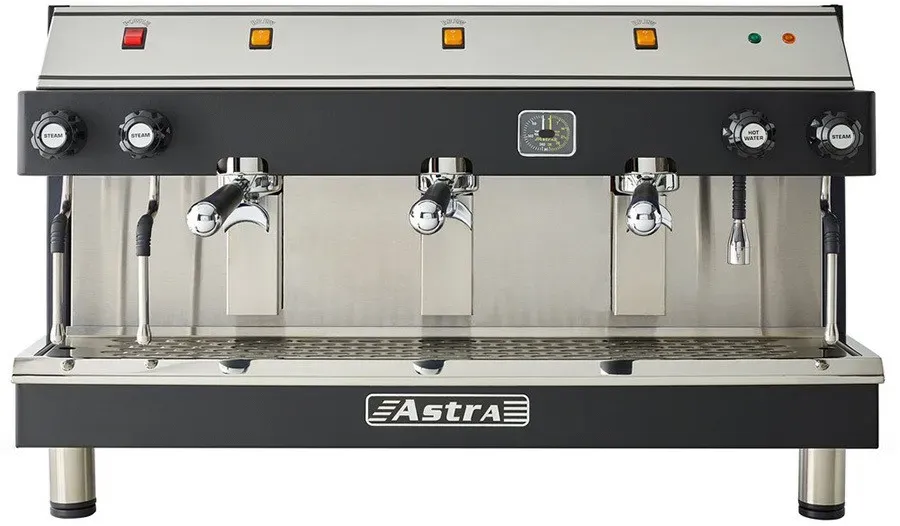 Equip your kitchen for success with the Astra Manufacturing M3S-018 Espresso Cappuccino Machine. This commercial-grade machine is designed to meet the demands of a busy restaurant setting. With three brewing heads, three steam wands, and a hot water valve, you can effortlessly create delicious espresso and cappuccino beverages. The 17 liter boilers capacity ensures a steady supply of hot water, while the thermo circulation brewing system guarantees consistent flavor extraction. The automatic water fill and vacuum valve make operation a breeze, and the pre-infusion capabilities enhance the aroma and taste of your coffee. This machine is ETL listed to NSF 4, UL197, and CSA C22.22 No. 109 standards, ensuring its safety and reliability. With its high capacity of 720 cups per hour, this espresso cappuccino machine is the perfect addition to any commercial restaurant. Power it down overnight to maximize its performance and longevity.