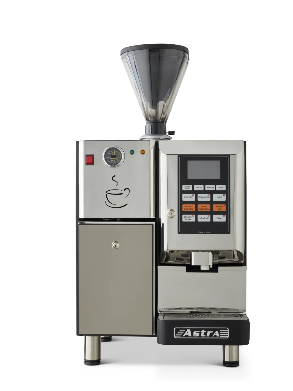 Optimize Your Restaurant Efficiency with the Astra Manufacturing SM-222 Espresso Cappuccino Machine. This high-performance machine is designed to meet the demands of a busy commercial restaurant. With its automatic operation and water connection and drain capabilities, you can serve up to 150 cups of delicious espresso or cappuccino per hour. The 4.2 liter boiler capacity ensures a continuous supply of hot water, while the double grinder allows you to offer a variety of coffee options to your customers. The 16 programmable drinks and touch pad interface make it easy to customize and serve a wide range of beverages. The automatic water fill and pre-infusion capabilities ensure consistent and flavorful results every time. With its ETL, NSF 4, UL197, and CSA C22.22 No. 109 certifications, this machine guarantees safety and reliability. Upgrade your restaurant's coffee service with the Astra Manufacturing SM-222 Espresso Cappuccino Machine.