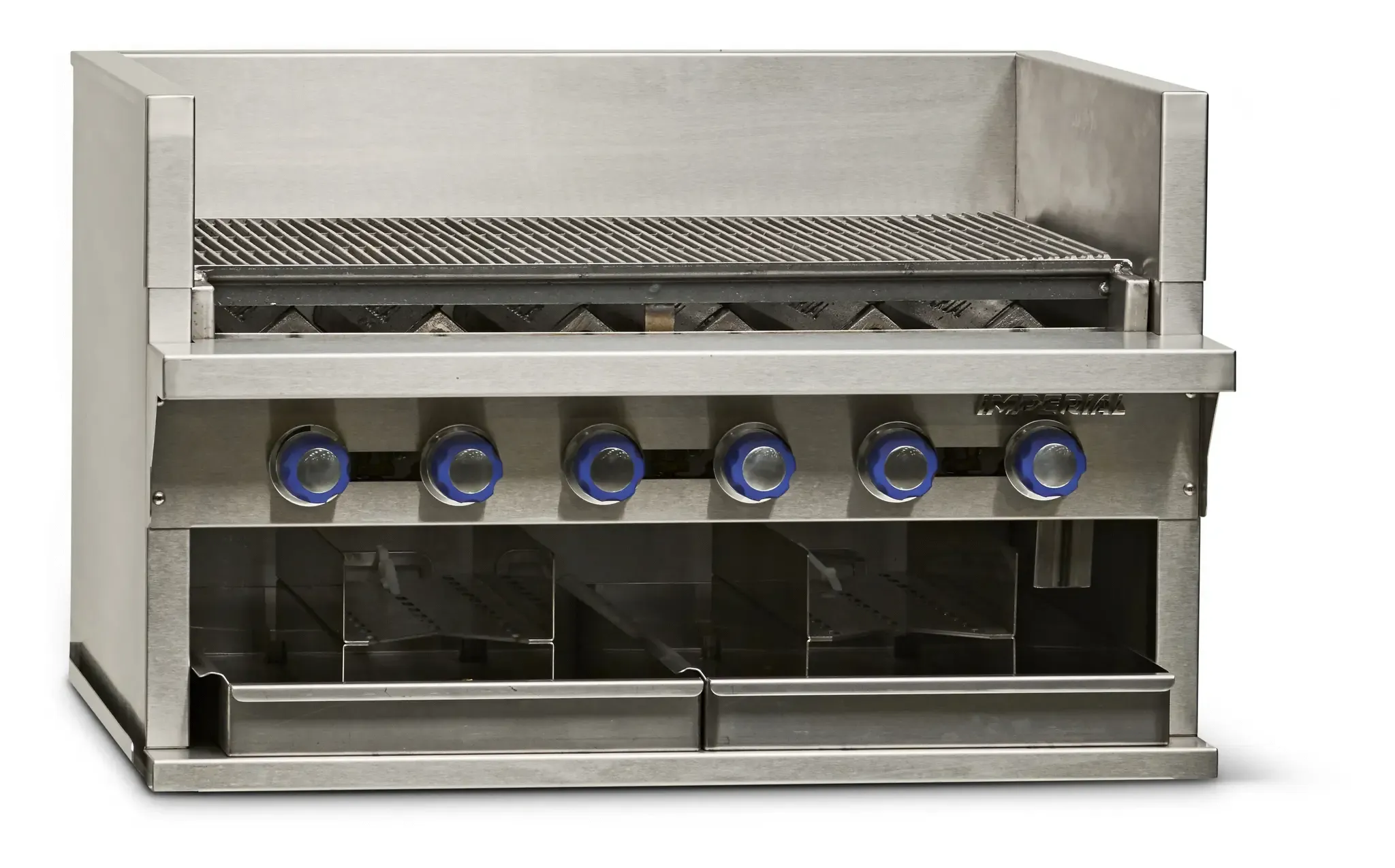 Ignite culinary passion with the Imperial IABA-72 Gas Countertop Charbroiler. This high-quality charbroiler is designed to meet the demands of commercial restaurant kitchens. With its 72-inch size and 13 stainless steel burners, it provides ample cooking space and powerful heat distribution. The cast iron radiants and grates ensure even heat distribution and excellent heat retention, resulting in perfectly cooked and flavorful dishes every time. The smoke system with four log holders adds a smoky flavor to your grilled creations, enhancing the taste and appeal of your menu items. The full-width grease gutter, removable grease can, and water pans make cleaning a breeze, ensuring a hygienic cooking environment. Made with durable stainless steel, this charbroiler is built to withstand the rigors of a busy kitchen. With a whopping 260,000 BTU, this charbroiler delivers exceptional performance and efficiency. Trust Imperial for top-notch quality and reliability in your commercial kitchen.