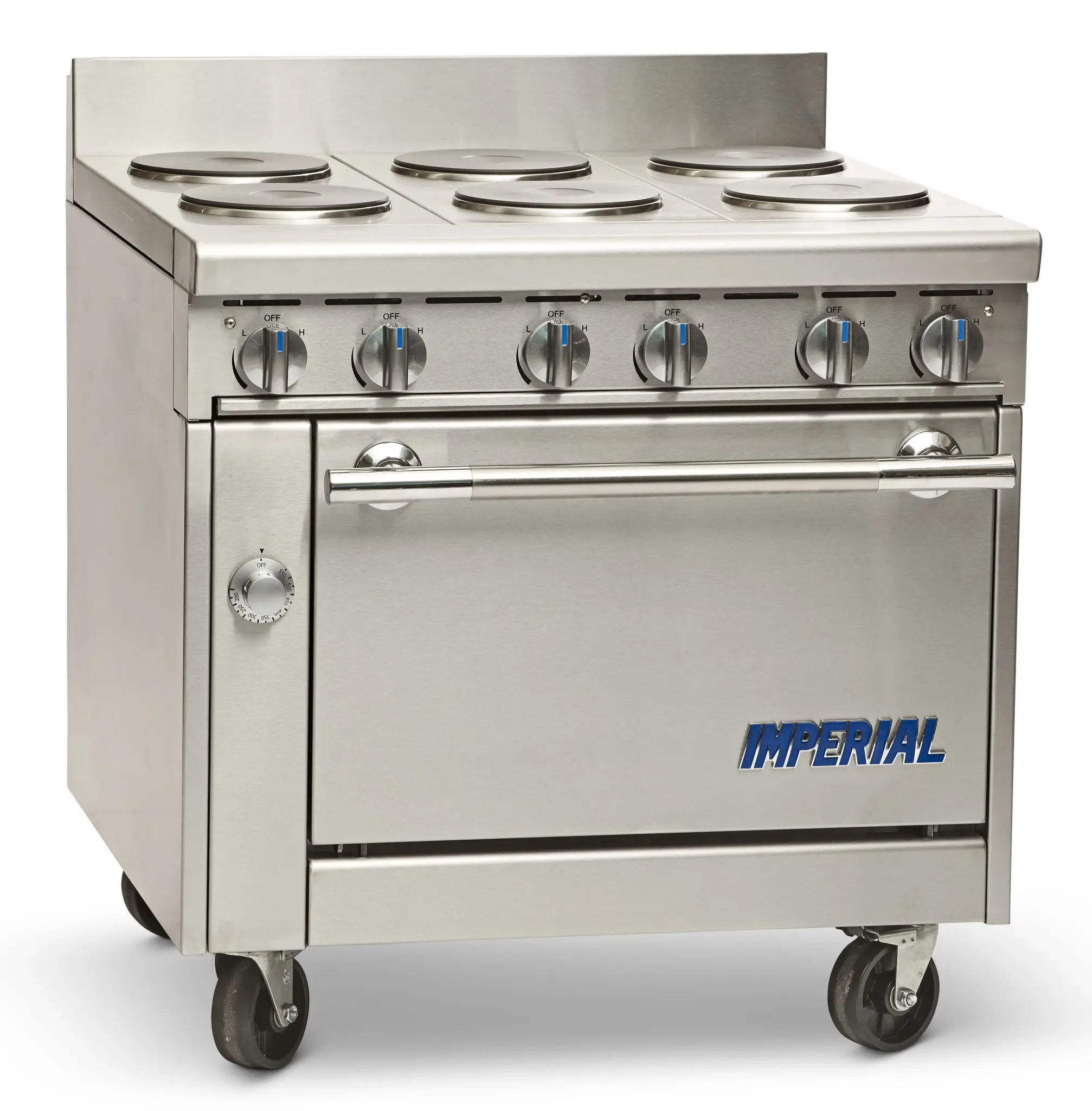 Enhance your commercial kitchen with the Imperial, IHR-6-E-M, Range, 36" Heavy Duty, Electric. This heavy-duty range is designed to meet the demands of a busy restaurant kitchen. With its six round elements and infinite heat controls, you have precise control over your cooking. The stainless steel front, sides, backguard, and landing ledge not only give this range a sleek and professional look but also make it easy to clean and maintain. The cETLus, ETL-Sanitation, and CE certifications ensure that this range meets the highest standards of safety and sanitation. Whether you're cooking up a storm during peak hours or preparing delicate dishes, this range is up to the task. Invest in the Imperial, IHR-6-E-M, Range, 36" Heavy Duty, Electric and experience the durability and performance that will take your commercial kitchen to the next level.