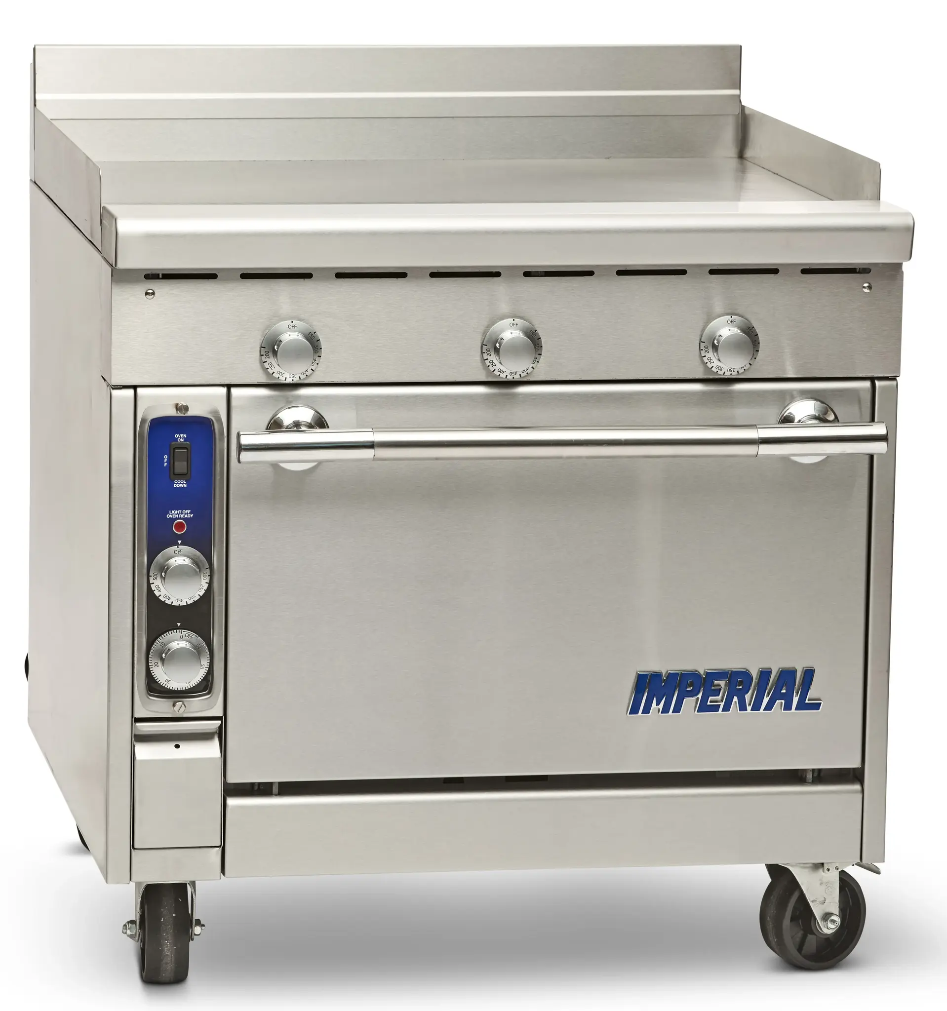 Ignite culinary passion with the Imperial, IHR-GT36-E-M, Range, 36" Heavy Duty, Electric. This heavy-duty range is designed to meet the demands of a commercial restaurant kitchen. With its 36" size, it provides ample cooking space for preparing large quantities of food. The modular design allows for easy customization and integration into any kitchen layout. The griddle features thermostatic controls, ensuring precise temperature control for consistent cooking results. The 4"W grease trough and removable grease can make cleaning a breeze, promoting a clean and hygienic cooking environment. Made with stainless steel front, sides, backguard, and landing ledge, this range is not only durable but also easy to clean and maintain. It is cETLus, ETL-Sanitation, and CE certified, guaranteeing its safety and compliance with industry standards. Elevate your restaurant's cooking capabilities with the Imperial, IHR-GT36-E-M, Range, 36" Heavy Duty, Electric.