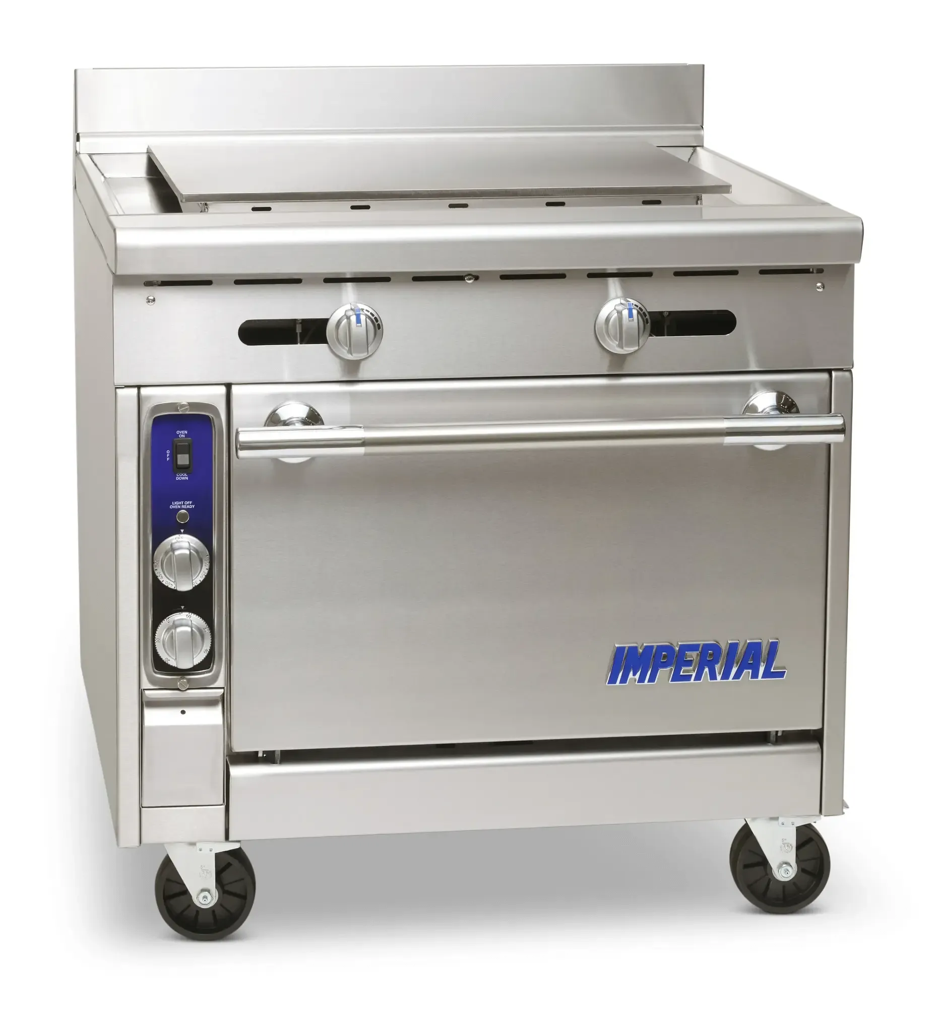 Invest in superior quality with the Imperial, IHR-PL36-C, Range, 36" Heavy Duty, Gas. This Diamond Series Heavy Duty Range is designed to meet the demands of a commercial restaurant kitchen. With its 1/2" thick steel plate plancha top, this range provides even heat distribution and excellent heat retention, making it perfect for searing and grilling. The convection oven comes with three chrome racks, allowing you to cook multiple dishes simultaneously. The grease gutter ensures easy cleaning and maintenance, while the stainless steel construction of the front, sides, landing ledge, backguard, and kick plate guarantees durability and longevity. The adjustable feet and 6" legs provide stability and flexibility in any kitchen layout. With a powerful 1/4 HP motor and 65000 BTU, this range delivers exceptional performance. Trust Imperial for top-notch quality and efficiency in your commercial kitchen.