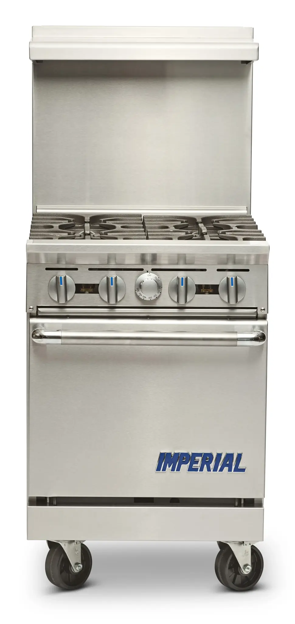 Equip your commercial kitchen with the Imperial IR-4 Range, a 24" gas restaurant range that combines efficiency and durability. With four open burners and a space-saving oven, this range is perfect for busy kitchens that require high-performance cooking equipment. The range features a safety pilot and shut-off valve, ensuring the safety of your staff and customers. Its stainless steel front, sides, backguard, landing ledge, and kick plate not only provide a sleek and professional appearance but also make it easy to clean and maintain. The adjustable feet and 6" legs allow for easy installation and leveling. With a powerful 155,000 BTU, this range delivers exceptional cooking performance, allowing you to prepare a wide variety of dishes quickly and efficiently. NSF, CE, CSA Flame, and CSA Star certifications guarantee its quality and reliability. Upgrade your kitchen with the Imperial IR-4 Range and experience the difference it makes in your restaurant's productivity and success.