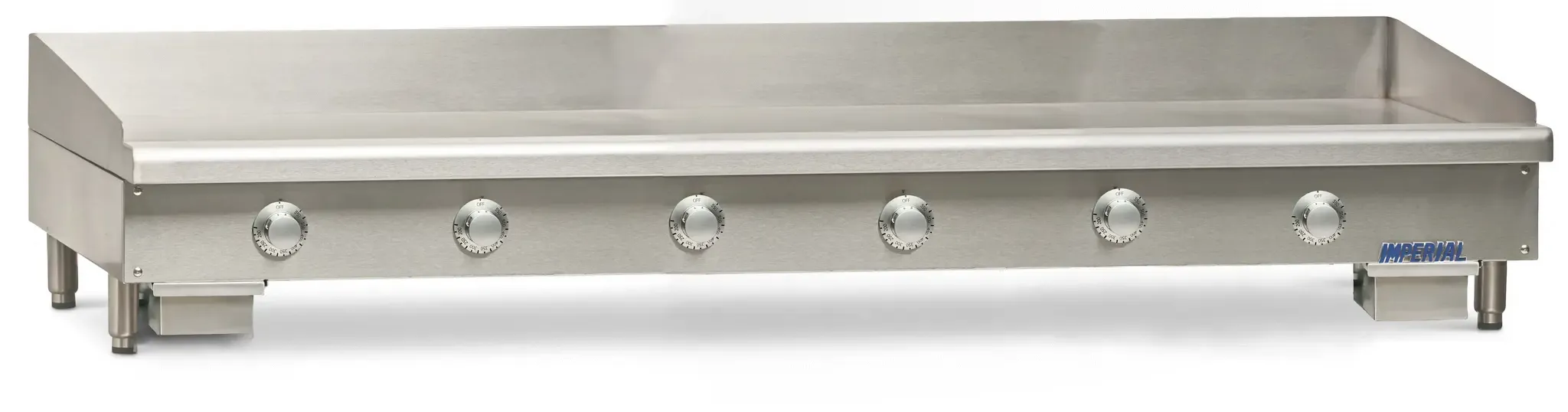 Unleash your inner chef with the Imperial ITG-72-E Electric Countertop Griddle. This top-of-the-line griddle is perfect for commercial restaurant use, offering a spacious 72" x 24" cooking surface that allows you to cook multiple dishes at once. The 1/2" thick polished steel plate ensures even heat distribution and excellent heat retention, while the thermostatic controls allow you to easily adjust the temperature to suit your cooking needs. The 4" wide grease trough and removable grease can make cleaning a breeze, while the stainless steel front, sides, splash guard, and ledge provide durability and a sleek appearance. With its cETLus, ETL-Sanitation, and CE certifications, you can trust that this griddle meets the highest safety and sanitation standards. Upgrade your restaurant kitchen with the Imperial ITG-72-E Electric Countertop Griddle and experience the difference in quality and performance.
