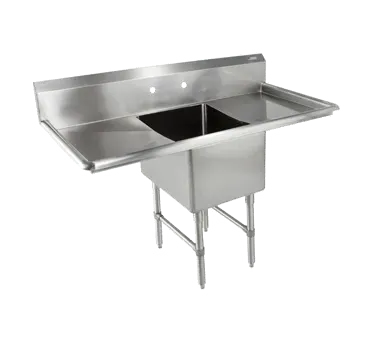 Optimize efficiency with intelligent solutions through the John Boos, 1B184-2D18 Sink. Designed specifically for commercial restaurant use, this sink offers a single compartment, measuring 18 inches front-to-back and 14 inches deep. The sink also features two 18-inch drainboards on the left and right sides, providing ample space for food preparation and dish drying. The 10-inch boxed backsplash with a 45-degree top and 2-inch return ensures a clean and hygienic workspace. With a set of splash mount faucet holes with 8-inch centers, this sink allows for easy installation of faucets. Made from durable 16-gauge stainless steel, this sink is built to withstand the demands of a busy restaurant kitchen. The adjustable side bracing and bullet feet provide stability and flexibility, while the NSF and CSA-Sanitation certifications guarantee the highest standards of cleanliness and safety. Upgrade your restaurant's efficiency with the John Boos, 1B184-2D18 Sink.