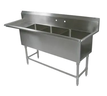 Modernize operations with versatile choices using the John Boos, 43PB18244-1D24L, Sink, (3) Three Compartment. This commercial-grade sink is designed to enhance efficiency and functionality in any restaurant setting. With its 3-compartment design, it allows for easy separation and organization of dishes, utensils, and other kitchen essentials. The 14-inch deep compartments provide ample space for washing and rinsing, while the 24-inch left drainboard offers a convenient area for drying. The sink is made of durable 14300 stainless steel construction, ensuring long-lasting performance and easy maintenance. It features adjustable front and side bracing, as well as adjustable bullet feet, allowing for easy installation and customization. The sink also comes with a 10-inch boxed backsplash with a 45-degree top and 2-inch return, providing added protection against splashes and spills. NSF and CSA-Sanitation certified, this John Boos sink is a reliable and essential addition to any commercial restaurant kitchen.