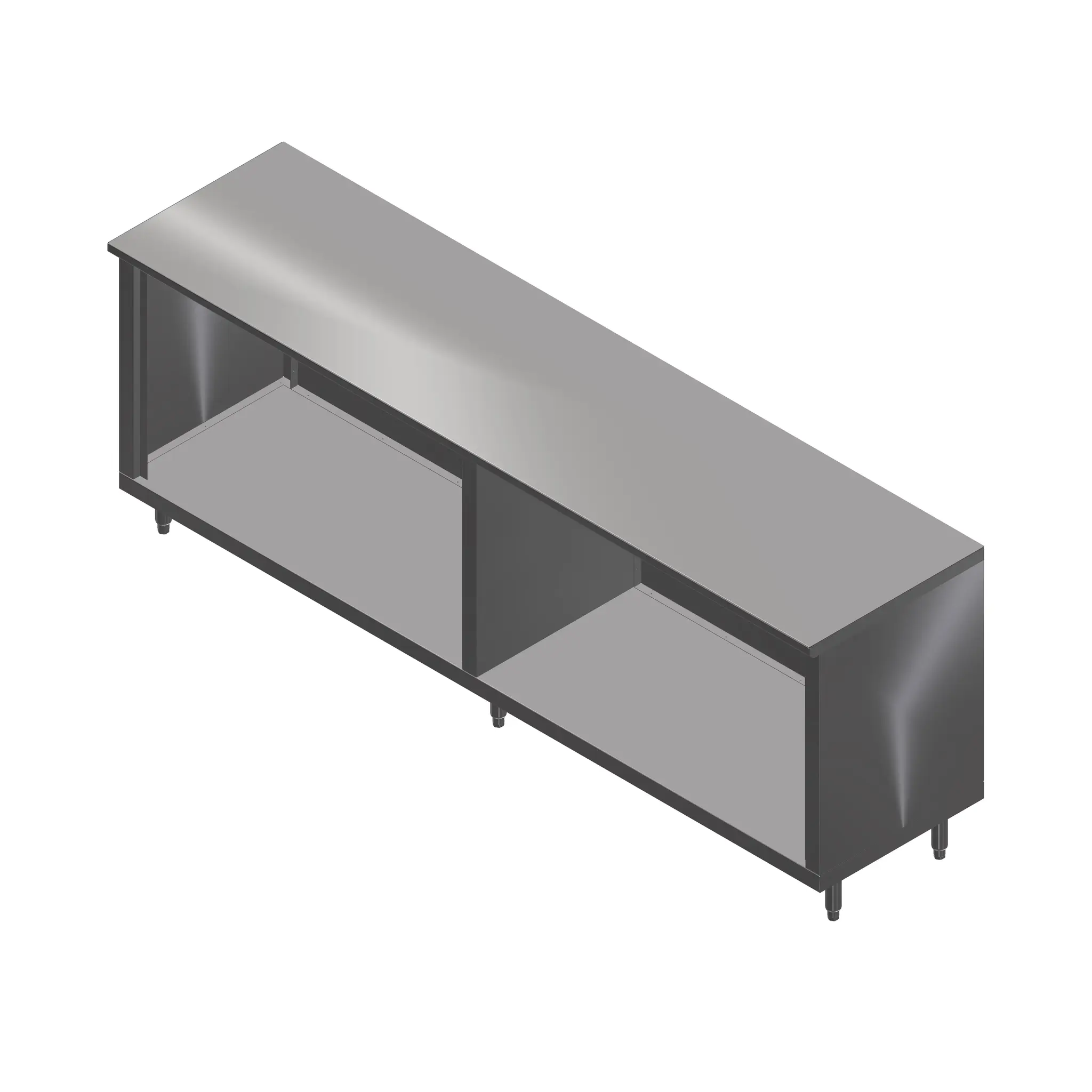 Optimize efficiency with intelligent solutions through the John Boos, 4CO6-3084, Work Table, Cabinet Base Open Front. This versatile work table is designed to enhance productivity in commercial restaurant settings. With its sturdy stainless steel construction, including a 16300 stainless steel flat top and a 18430 stainless steel wrap, this work table is built to withstand the demands of a busy kitchen. The Stallion Safety Edge front adds an extra layer of safety, while the stainless steel legs with adjustable feet ensure stability on any surface. The cabinet base with an open front provides convenient storage space for kitchen essentials, keeping them within easy reach. Whether you need a durable surface for food preparation or a storage solution for your kitchen supplies, this John Boos work table is the perfect choice. Trust in its quality and reliability to streamline your restaurant operations.