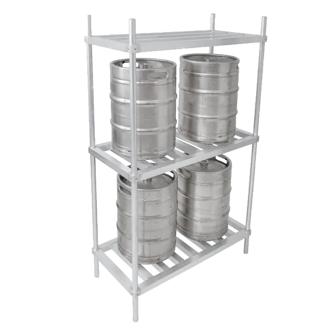Maximize convenience using efficient tools with the John Boos ALKR-2080 Keg Storage Rack. Designed specifically for commercial restaurant use, this rack offers a practical solution for keg storage. With three shelves and the ability to accommodate up to eight kegs, it provides ample space to keep your inventory organized and easily accessible. The mid and bottom shelves are constructed of 1-3/4 square tubing, ensuring durability and a load rating of 60 lb/ft. The top shelf, made of the same sturdy tubing, has a load rating of 15 lb/ft. The 1-5/16 diameter post and aluminum construction further enhance the rack's strength and stability. Whether you're a busy bar or a bustling restaurant, this keg storage rack from John Boos is a reliable and efficient addition to your establishment.