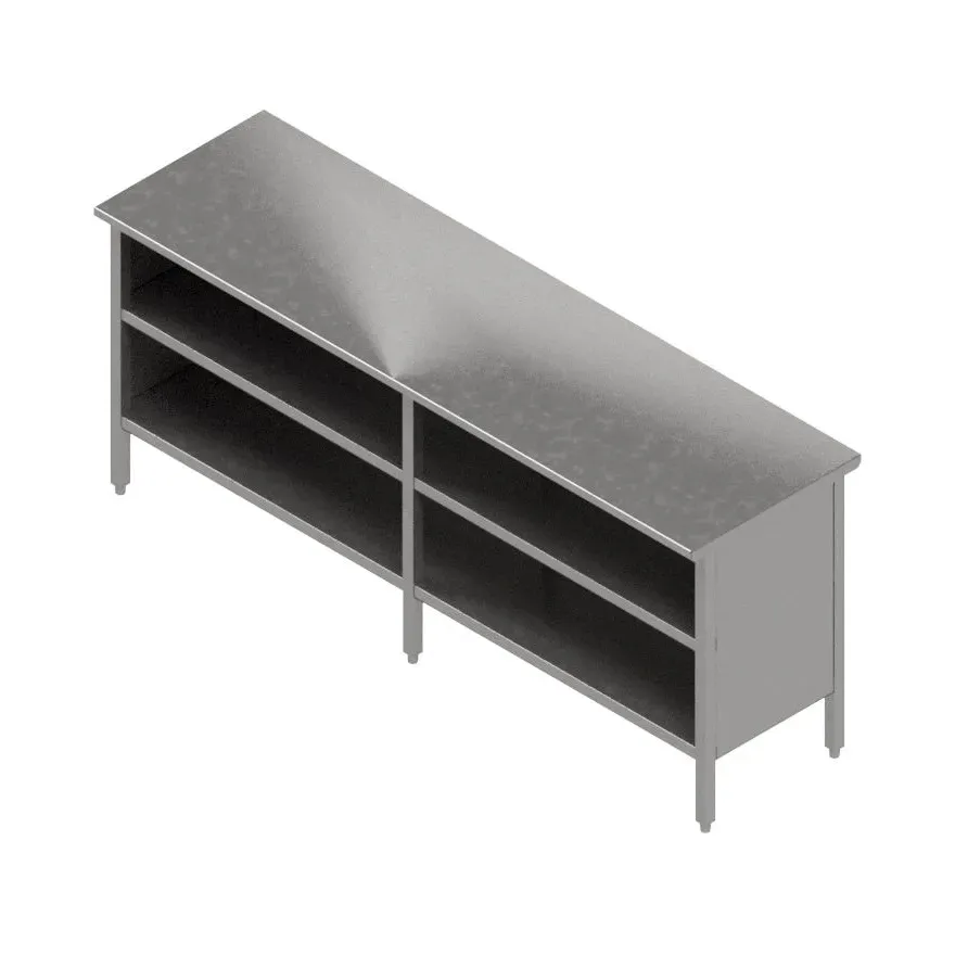Revitalize service with versatile options through the John Boos EBOS6-3084 Work Table. This cabinet base with an open front is designed to enhance efficiency and functionality in commercial restaurant settings. With its spacious 84W x 30D stainless steel flat top, this work table provides ample space for food preparation, plating, and other culinary tasks. The Stallion Safety Edge front and back ensure safety and prevent accidents, while the 90 turndown on the sides adds convenience and accessibility. The stainless steel base and undershelf offer durability and storage options, while the adjustable bullet feet provide stability on any surface. This all-welded set-up is NSF certified, guaranteeing its quality and suitability for commercial use. Whether it's a bustling kitchen or a busy food service area, the John Boos EBOS6-3084 Work Table is the perfect addition to streamline operations and elevate the dining experience.