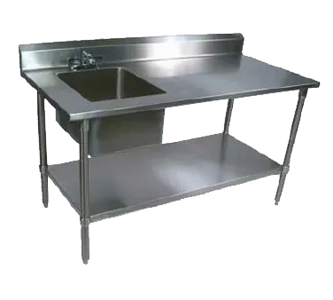 Upgrade workflow with innovative resources through the John Boos EPT6R5-3048GSK-L Work Table with Prep Sink. Designed for commercial restaurant use, this work table offers a convenient and efficient solution for food preparation. The 48W x 30D x 40-34H overall size provides ample space for various tasks, while the 16W x 20 front-to-back x 12 deep sink bowl on the left allows for easy cleaning and washing. The 5H backsplash ensures a clean and hygienic workspace, while the included 10 swing spout faucet with 4 O.C. provides easy access to water. Made with durable 16300 stainless steel top, galvanized legs, and an adjustable undershelf, this work table is built to withstand the demands of a busy kitchen. NSF and CSA-Sanitation certified, this work table guarantees safety and sanitation. Upgrade your restaurant's efficiency and productivity with the John Boos EPT6R5-3048GSK-L Work Table with Prep Sink.
