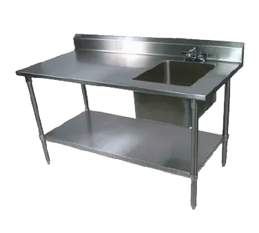 Transform your service with cutting-edge solutions using the John Boos EPT6R5-3048SSK-R Work Table with Prep Sink. This versatile work table is designed to enhance efficiency in commercial restaurant settings. With its 48-inch width and 30-inch depth, it provides ample space for food preparation and other tasks. The 16-inch by 20-inch sink bowl on the right side allows for convenient washing and rinsing, while the 5-inch backsplash helps maintain cleanliness. The table comes with a 10-inch swing spout faucet, ensuring easy access to water. Made of durable 16300 stainless steel, it is built to withstand the demands of a busy kitchen. The stainless steel legs and adjustable undershelf provide stability and storage options. With NSF and CSA-Sanitation certifications, this work table meets the highest standards of hygiene and safety. Upgrade your restaurant's functionality with the John Boos EPT6R5-3048SSK-R Work Table with Prep Sink.