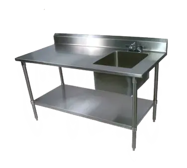 Modernize your service with innovative tools through the John Boos EPT8R5-3048SSK-R Work Table with Prep Sink. This commercial-grade work table is designed to enhance efficiency and functionality in your restaurant kitchen. With its 48-inch width and 30-inch depth, it provides ample space for food preparation and storage. The 16-inch by 20-inch sink bowl on the right side allows for convenient washing and rinsing of ingredients and utensils. Made of durable 18300 stainless steel, this work table is built to withstand the demands of a busy kitchen. The stainless steel legs and adjustable undershelf provide stability and storage options, while the stainless steel adjustable bullet feet ensure easy leveling on any surface. NSF and CSA-Sanitation certified, this work table meets the highest standards of cleanliness and safety. Upgrade your restaurant kitchen with the John Boos EPT8R5-3048SSK-R Work Table with Prep Sink and experience improved productivity and organization.