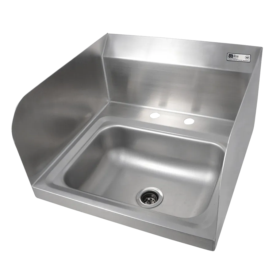 Revamp operations with flexible choices using the John Boos PBHS-W-1410-2DM-SSLR Hand Sink. This wall-mounted sink is designed to enhance efficiency in commercial restaurant settings. With its 14-inch width, 10-inch front-to-back depth, and 5-inch deep bowl, it provides ample space for handwashing. The deck mount faucet holes with 4-inch centers allow for easy installation of a faucet (faucet not included), while the 2-inch drain opening with basket drain ensures proper drainage. The sink also features left and right side splashes to contain water and prevent spills. Made of durable stainless steel, this sink is built to withstand the demands of a busy kitchen. It is NSF and CSA-Sanitation certified, guaranteeing its quality and safety. Upgrade your restaurant's hygiene standards with the John Boos PBHS-W-1410-2DM-SSLR Hand Sink.