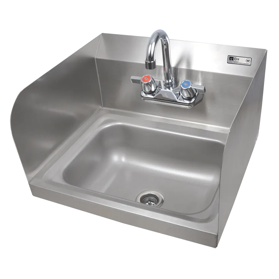 Enhance operations with clever choices using the John Boos PBHS-W-1410-P-SSLR Hand Sink. This wall-mounted sink is designed specifically for commercial restaurant use, offering convenience and efficiency in a compact size. The sink features a 14-inch width, 10-inch front-to-back depth, and a 5-inch deep bowl, providing ample space for handwashing and other tasks. The splash mount faucet holes with 4-inch centers allow for easy installation of the included faucet, ensuring a steady flow of water. With left and right side splashes, this sink helps to contain water and prevent spills, keeping your workspace clean and safe. The all-stainless steel construction ensures durability and easy cleaning, while the NSF and CSA-Sanitation certifications guarantee its suitability for use in a commercial kitchen. Upgrade your restaurant's hygiene standards with the John Boos PBHS-W-1410-P-SSLR Hand Sink.