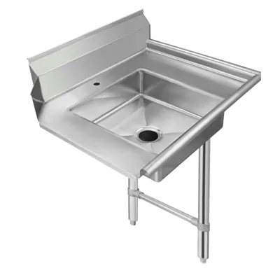 Equip your commercial restaurant for convenience with the versatile Klingers Trading, SDT48R Soiled Dishtable. This stainless steel dishtable is designed for right-to-left operation, providing efficient workflow in your kitchen. With a spacious 48"W x 30"D size, it offers ample space for dishwashing and food preparation tasks. The 16/304 stainless steel top ensures durability and easy cleaning, while the 9"H backsplash prevents water and debris from splashing onto the walls. The dishtable also features a 20" x 20" pre-rinse sink with a single faucet hole, allowing for efficient pre-washing of dishes. Supported by stainless steel legs and crossrails, this dishtable is sturdy and stable. ETL-Sanitation certified, it meets the highest hygiene standards. Upgrade your restaurant's dishwashing area with the Klingers Trading, SDT48R Soiled Dishtable and streamline your operations.