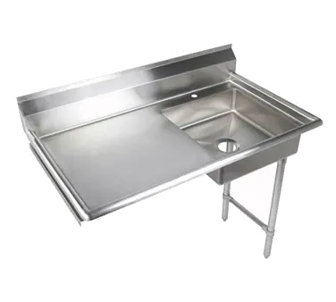 Modernize operations with the Klingers Trading, UDT48L Dishtable. This undercounter dish table is designed to streamline your restaurant's workflow and enhance efficiency. Made with durable 16/304 stainless steel construction, this dish table is built to withstand the demands of a busy commercial kitchen. The 24" left drainboard provides ample space for stacking dirty dishes, while the 20" x 20" pre-rinse sink on the right allows for convenient prepping and rinsing. The stainless steel legs ensure stability and durability, while the ETL-Sanitation certification guarantees the highest standards of cleanliness and hygiene. Whether you're running a small cafe or a bustling restaurant, the Klingers Trading, UDT48L Dishtable is the perfect addition to your kitchen. Upgrade your restaurant's operations today and experience the benefits of this smart choice.