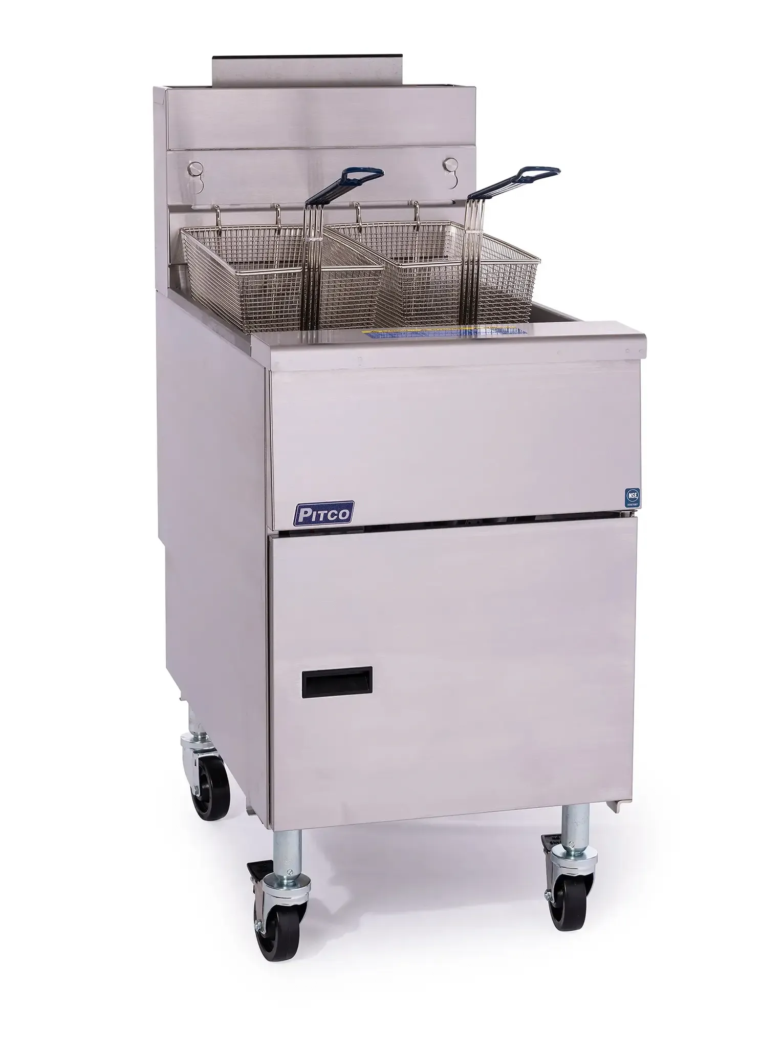 Stainless steel basic fryer. Millivolt controls. 2 twin baskets with removeable hangers.