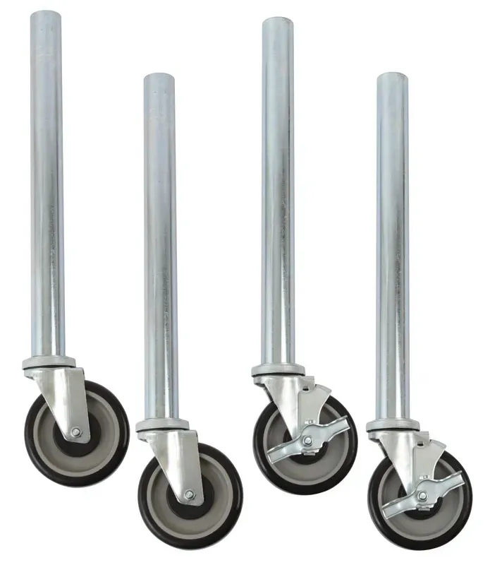 Optimize utilization with the Royal Industries, ROY ES GLC 4 Equipment Stand. This versatile stand is designed to meet the demands of a commercial restaurant setting, providing a sturdy and convenient solution for various tasks. With a table height of 23-1/2", it offers the perfect working surface for food preparation, equipment placement, or storage. The set of four legs comes with 5" PU casters, two of which have brakes, ensuring easy mobility and stability when needed. Made by Royal Industries, a trusted vendor in the industry, this equipment stand is built to last and withstand the rigors of a busy kitchen. It is packed with features that enhance efficiency, including ample space for equipment and supplies, and a durable construction that can handle heavy loads. Invest in the Royal Industries, ROY ES GLC 4 Equipment Stand and elevate your restaurant's productivity and organization.