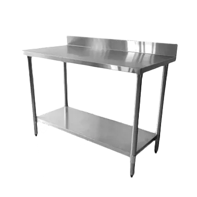 Enhance flexibility with the Thunder Group SLWT42448F4 Work Table. Designed for commercial restaurant use, this work table is a versatile addition to any kitchen. The 18 gauge/430 stainless steel flat top provides a durable and easy-to-clean surface, while the 4" backsplash helps prevent spills and messes. The turn-down edges add an extra layer of safety, reducing the risk of accidents. With a galvanized steel adjustable undershelf and legs, this work table offers ample storage space for utensils, ingredients, and equipment. The 1" adjustable plastic bullet feet ensure stability on any surface. Whether you need extra prep space or a sturdy surface for food preparation, the Thunder Group SLWT42448F4 Work Table is the perfect choice for your commercial restaurant.