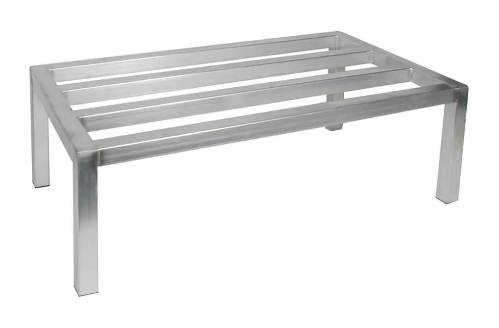 Constructed from durable aluminum, the Winco Dunnage Rack features a tubular welded structure that ensures long-lasting performance and stability. This sturdy design not only supports heavy loads but also resists corrosion, making it ideal for the demanding environment of a commercial kitchen. The rack's NSF certification guarantees that it meets strict public health and safety standards, providing you with peace of mind.