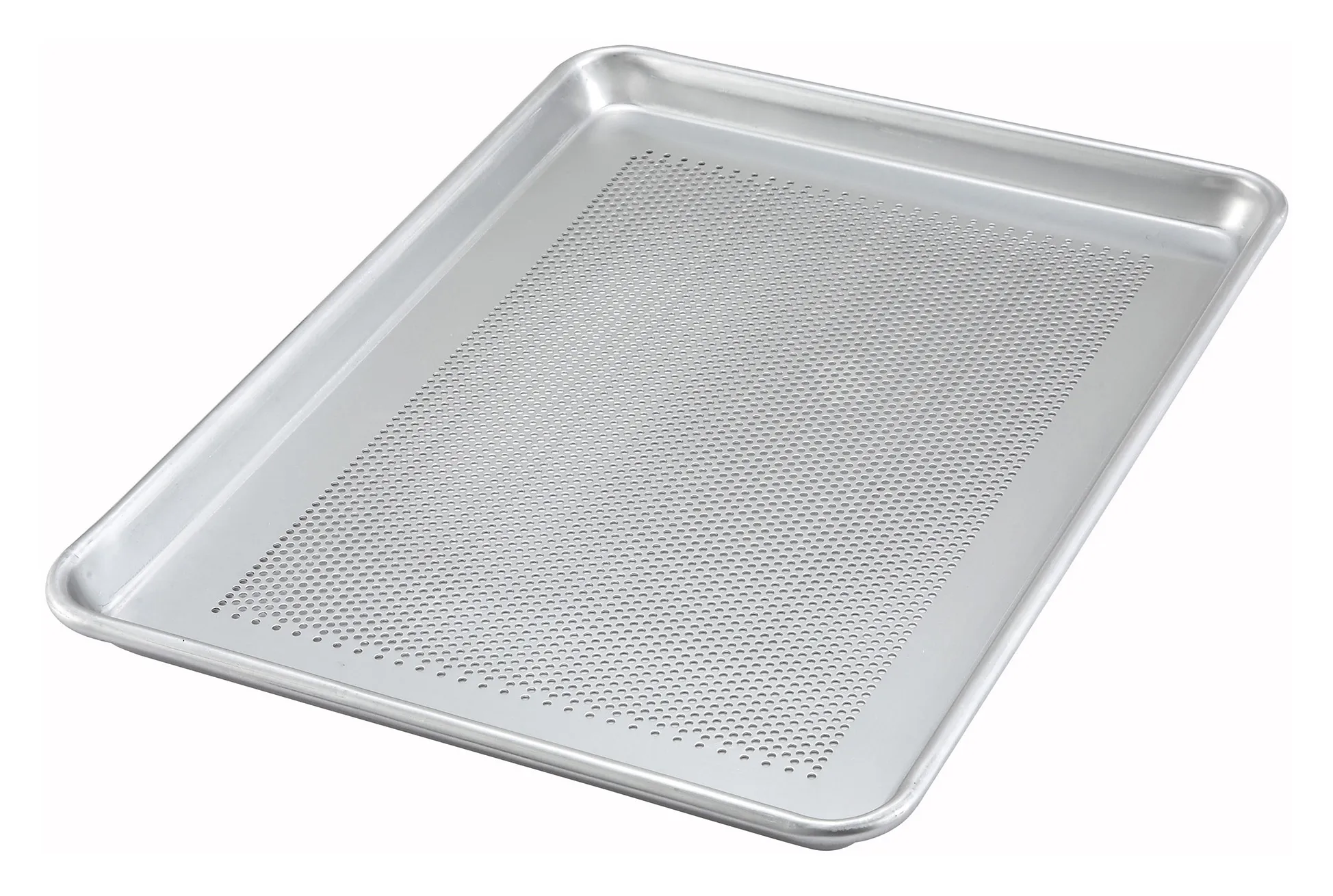 Unleash the potential of the kitchen with the Winco Sheet Pan. Designed for the demanding environment of a professional restaurant, this full-size sheet pan measures 26 x 18 inches, providing ample space for baking, roasting, and cooling a variety of dishes. The perforated design, featuring 18-diameter holes, ensures even heat distribution and optimal airflow, resulting in perfectly cooked and crisped foods every time.