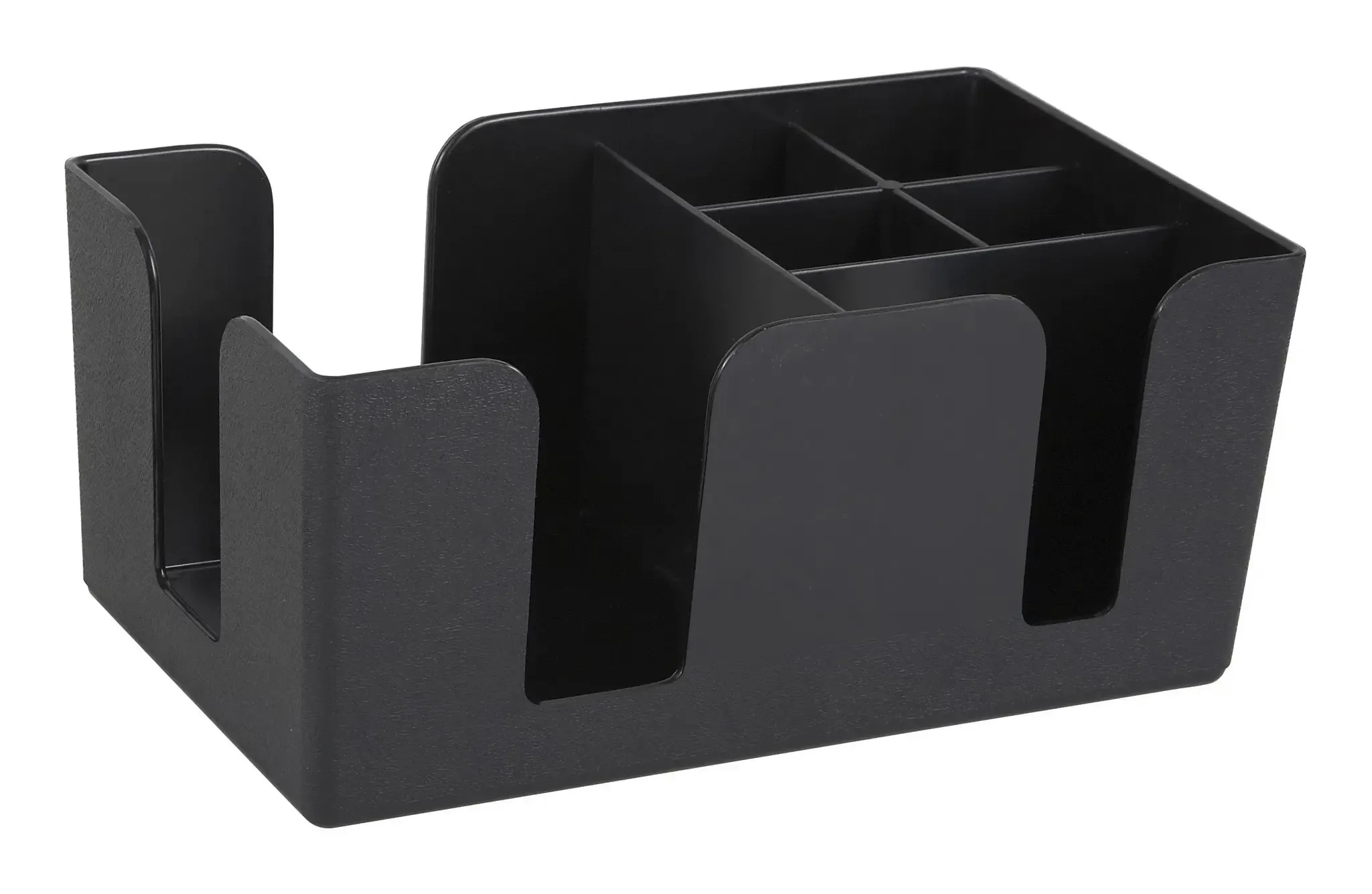 The Winco Bar Caddy is meticulously designed to keep your bar area neat and organized. With six spacious compartments, it offers ample room to store cocktail napkins, straws, stirrers, and other bar essentials, ensuring that everything you need is within easy reach. This thoughtful design not only enhances efficiency but also contributes to a clean and professional appearance, which is crucial in a restaurant setting.