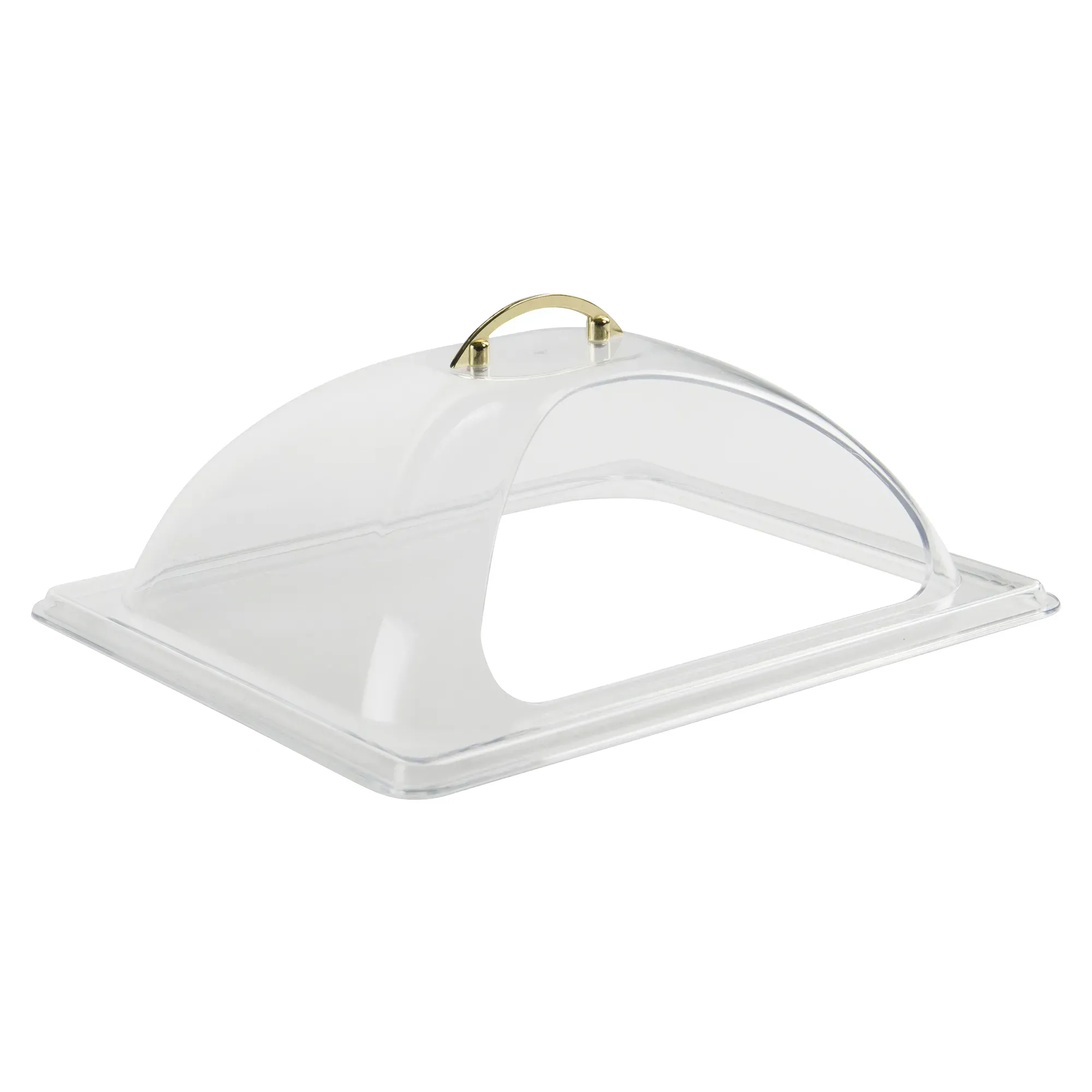 The Winco Dome Cover features a side-cut design, measuring 13-1/2 x 11 x 4-1/2H, which provides a perfect fit for 12-size steam table poly pans. This precise fit helps maintain the temperature and quality of your dishes, ensuring that your food stays fresh and appetizing for longer periods. The clear polycarbonate material allows for easy visibility, so you can quickly identify the contents without having to remove the cover, saving time and reducing the risk of contamination.