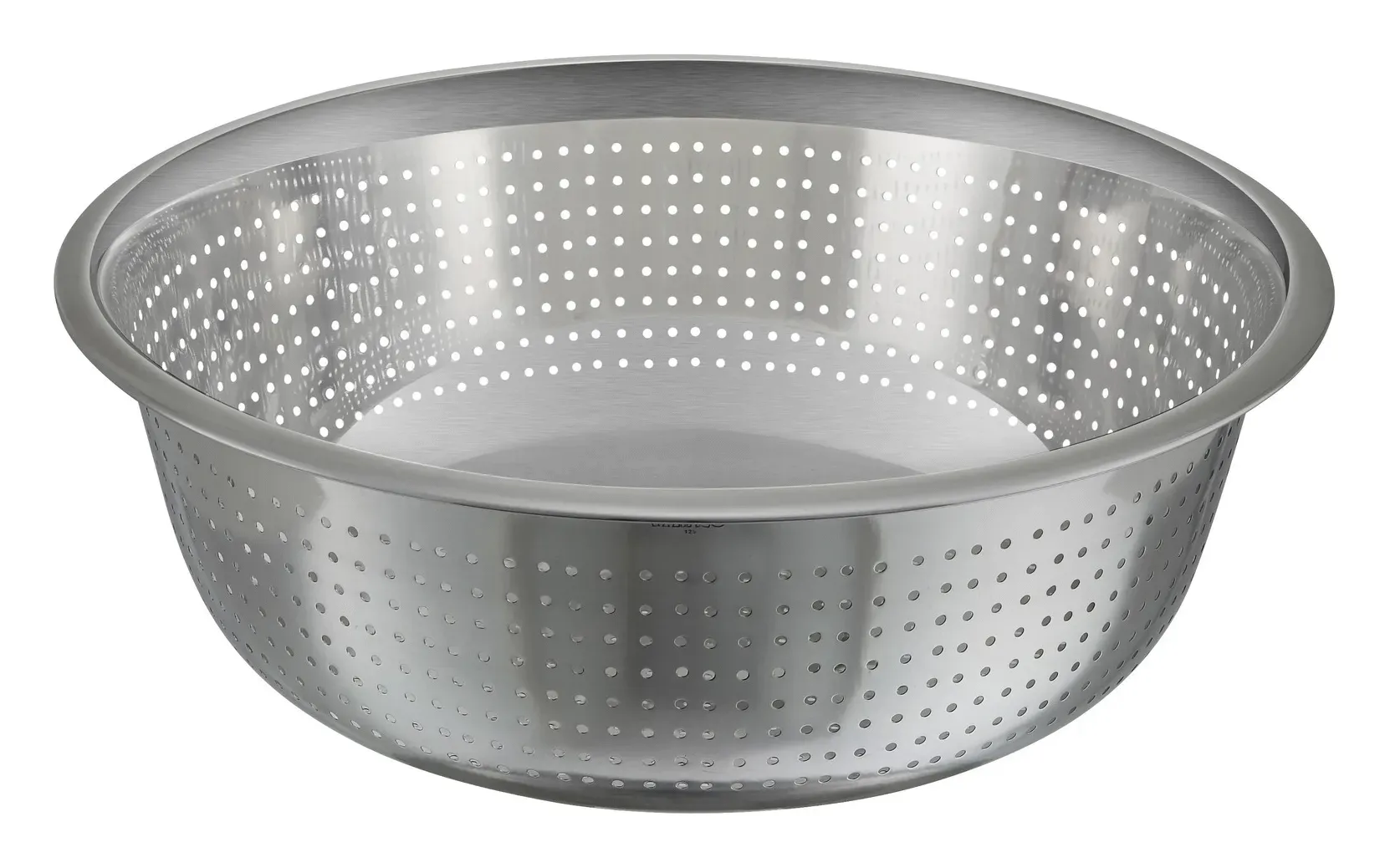 Designed for durability and easy to use with the Winco Chinese Colander, this essential kitchen tool is perfect for any restaurant setting. With a 13-inch diameter and 2.5mm holes, this stainless steel colander is built to handle the rigors of a busy kitchen while ensuring efficient draining of ingredients.