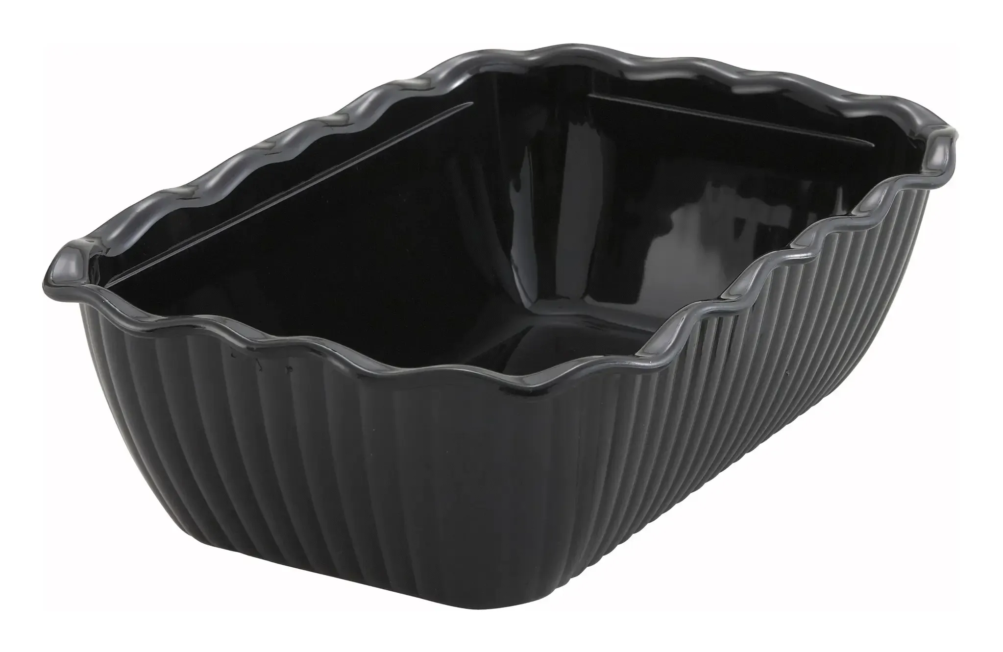 The sleek black design of the Winco Deli Crock not only adds a touch of elegance to your deli display but also provides a neutral backdrop that highlights the vibrant colors of your culinary creations. Its fluted edges offer a sophisticated look, making it perfect for showcasing salads, cold cuts, and other deli items in a visually appealing manner.