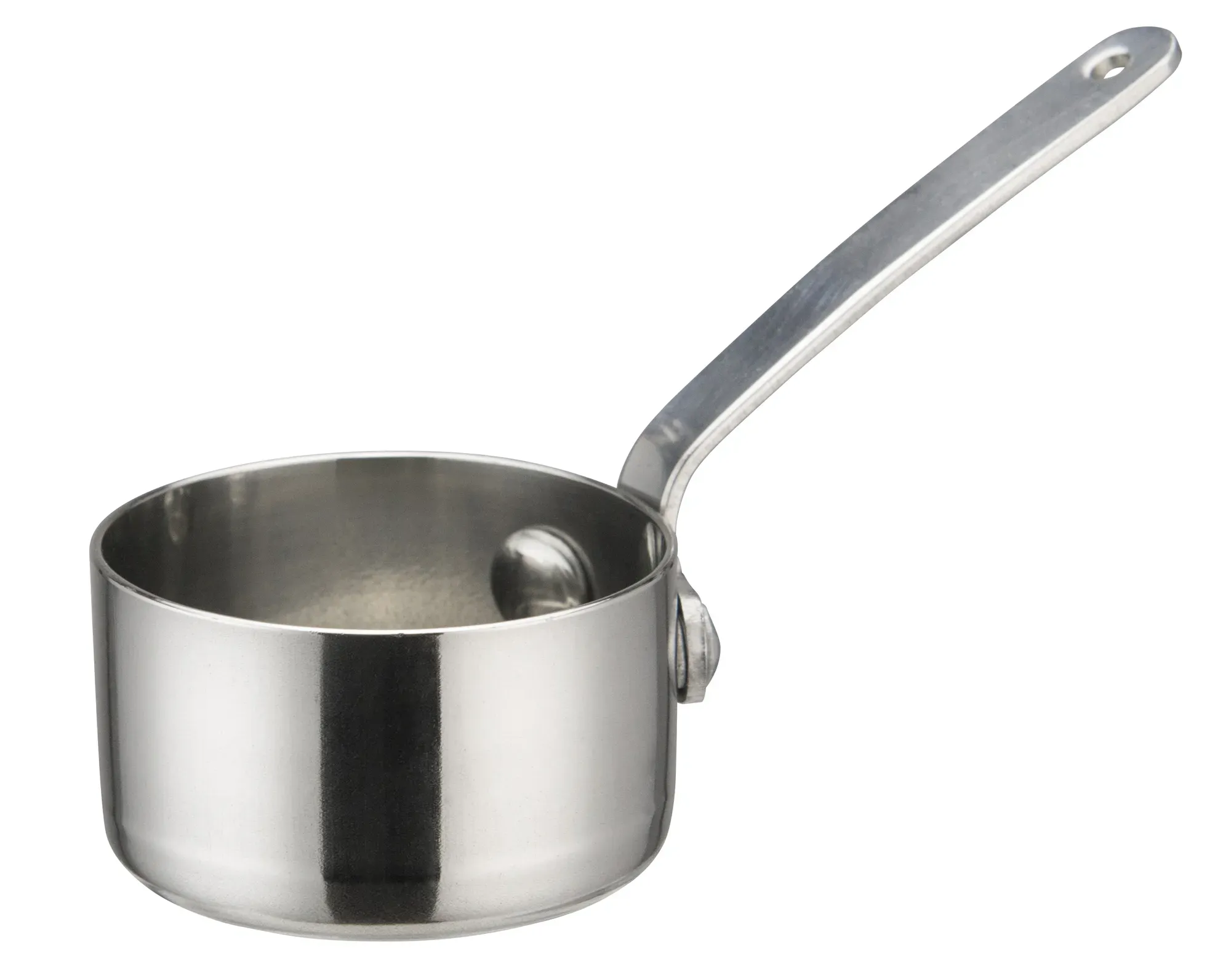 Essential for every chef, the Winco Mini Sauce Pan is a must-have in any professional kitchen. With a compact size of 2 inches in diameter and 1-3/16 inches in height, this stainless steel pan is perfect for precise culinary tasks. Whether you're preparing delicate sauces, melting butter, or heating small portions, this Mini Sauce Pan ensures consistent results every time.