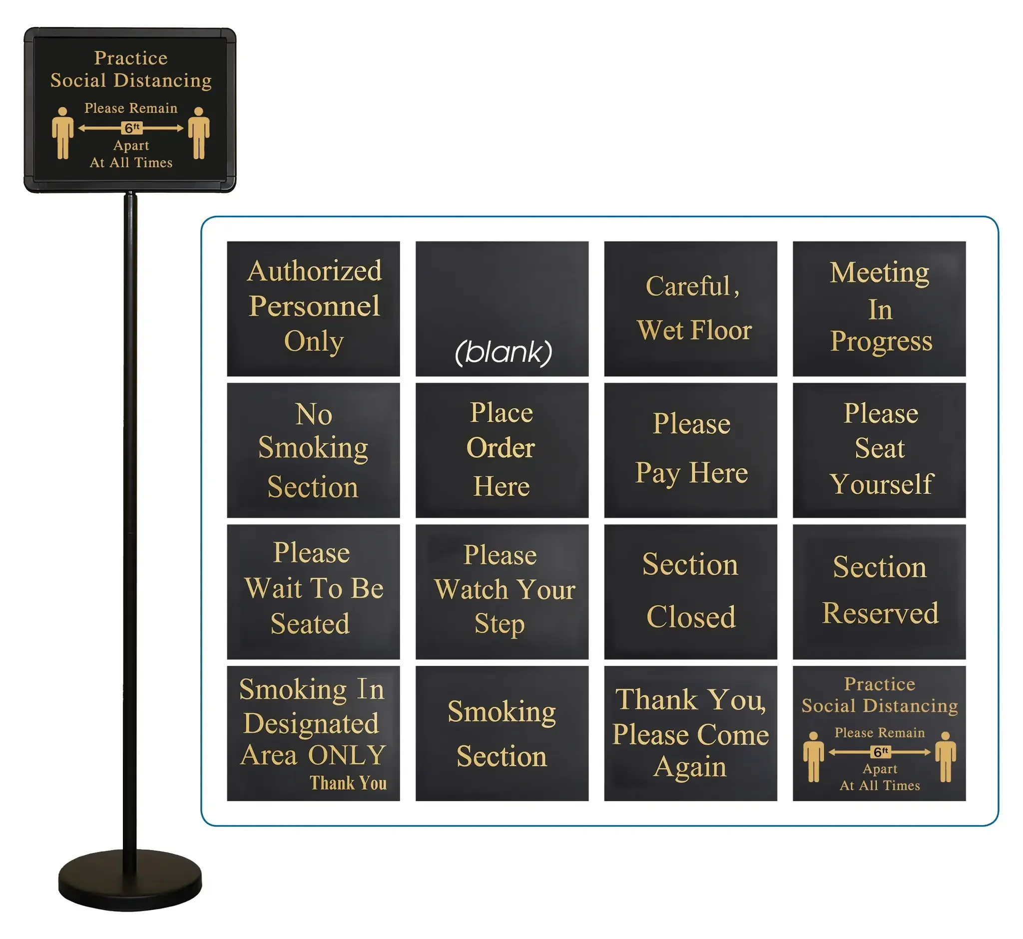 Achieve professional-level results with the Winco Hostess Sign Set. This essential tool for any restaurant includes 15 screened messages, providing clear and concise communication to your guests. Whether you need to inform patrons about wait times, reservations, or special events, this sign set ensures that your messages are always visible and professional.