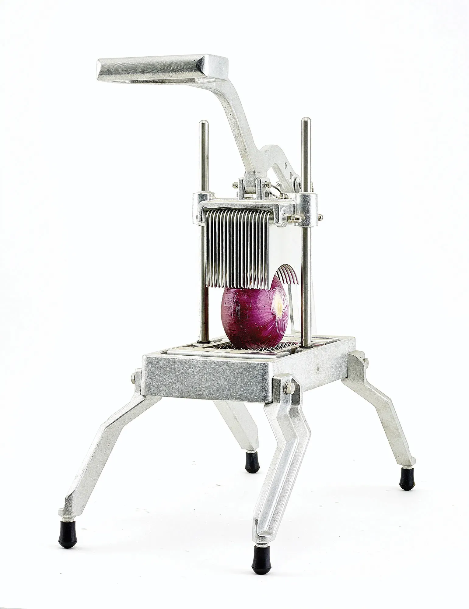 Stability is paramount in a fast-paced kitchen, and the Winco Onion Slicer delivers with its non-skid feet. This feature ensures the slicer remains firmly in place during operation, reducing the risk of accidents and enhancing overall safety. The aluminum Kattex construction adds to the slicer's durability while keeping it lightweight and easy to maneuver.