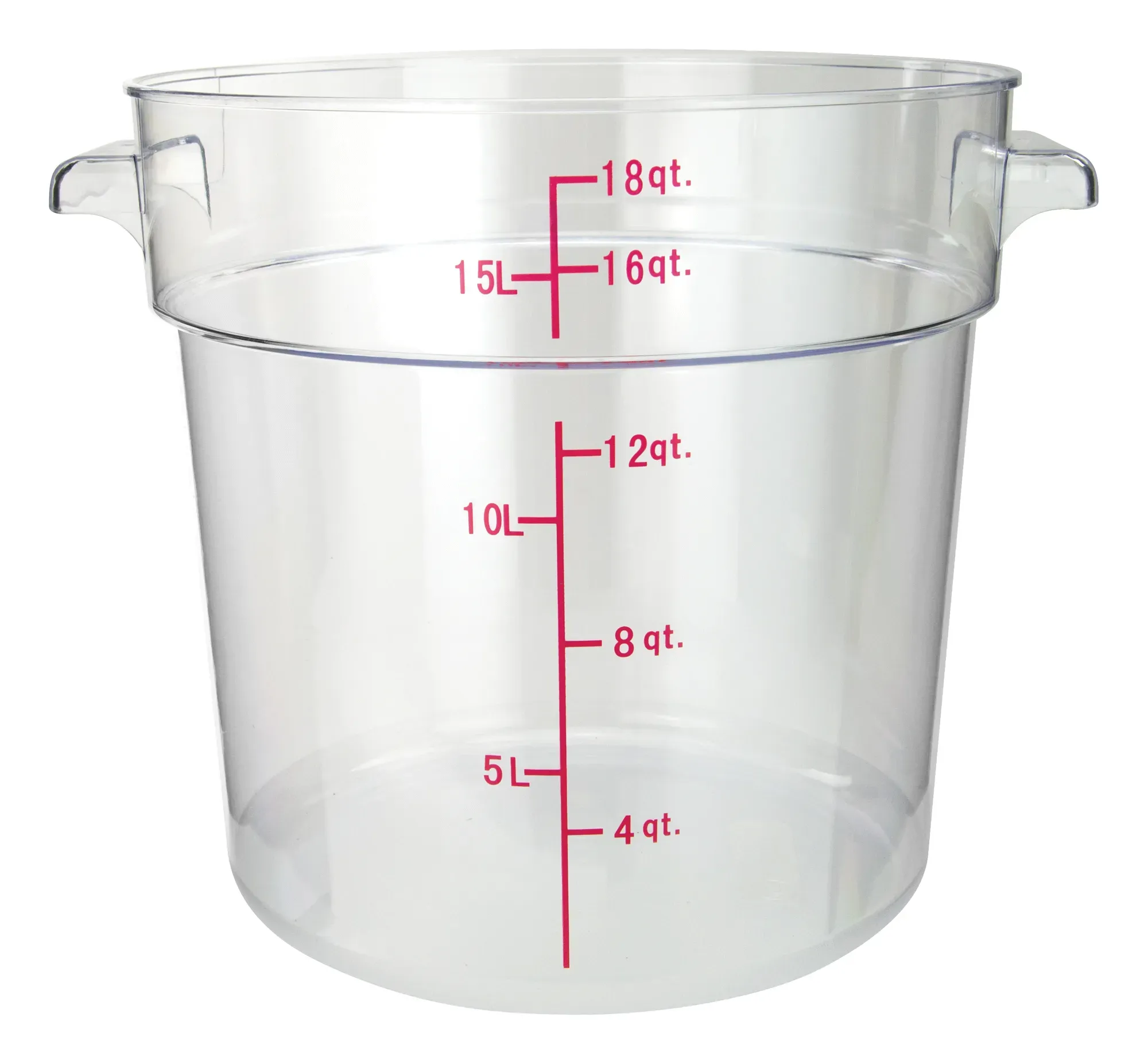 The 18-quart capacity of this storage container is ideal for holding large quantities of ingredients, making it perfect for bulk storage of soups, sauces, or prepped vegetables. Its round shape maximizes storage efficiency, fitting seamlessly into your kitchen's existing storage systems. The clear polycarbonate material is not only robust but also resistant to stains and odors, ensuring that your container remains clean and hygienic over time.
