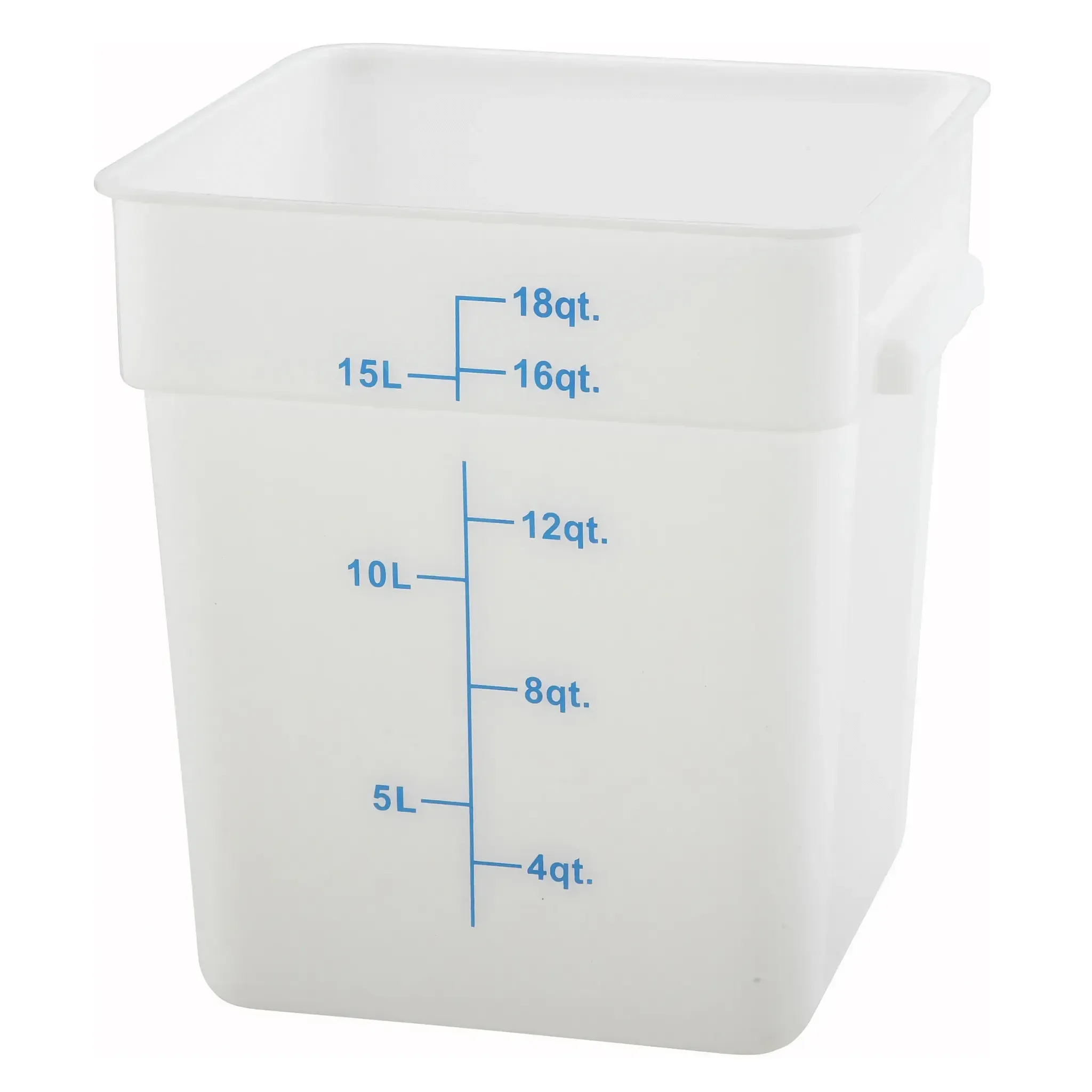The 18-quart capacity of the Winco 18qt Square Storage Container provides ample space for storing a variety of ingredients, from bulk dry goods to prepared sauces and soups. Its square shape maximizes storage efficiency, allowing you to make the most of your kitchen space. The container's sturdy construction ensures it can withstand the rigors of daily use, while its white color allows for easy labeling and identification of contents.