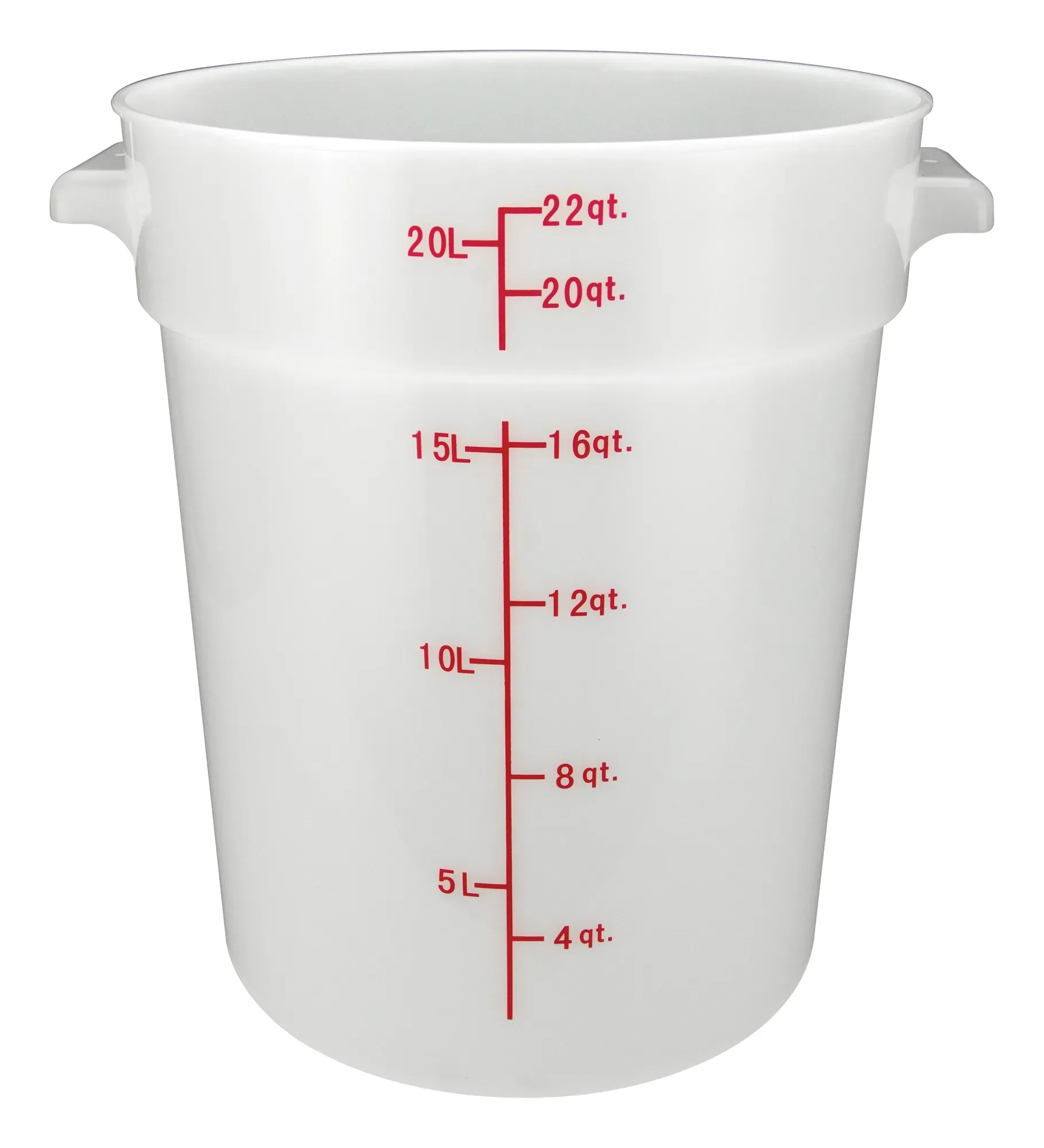 With a generous 22-quart capacity, this container is perfect for holding large quantities of ingredients, whether it's dry goods, fresh produce, or prepared foods. The round shape allows for easy stirring and mixing, making it ideal for both storage and food preparation tasks. Its sturdy construction ensures that it can withstand the rigors of daily use in a busy kitchen, while the white color provides a clean and professional appearance.