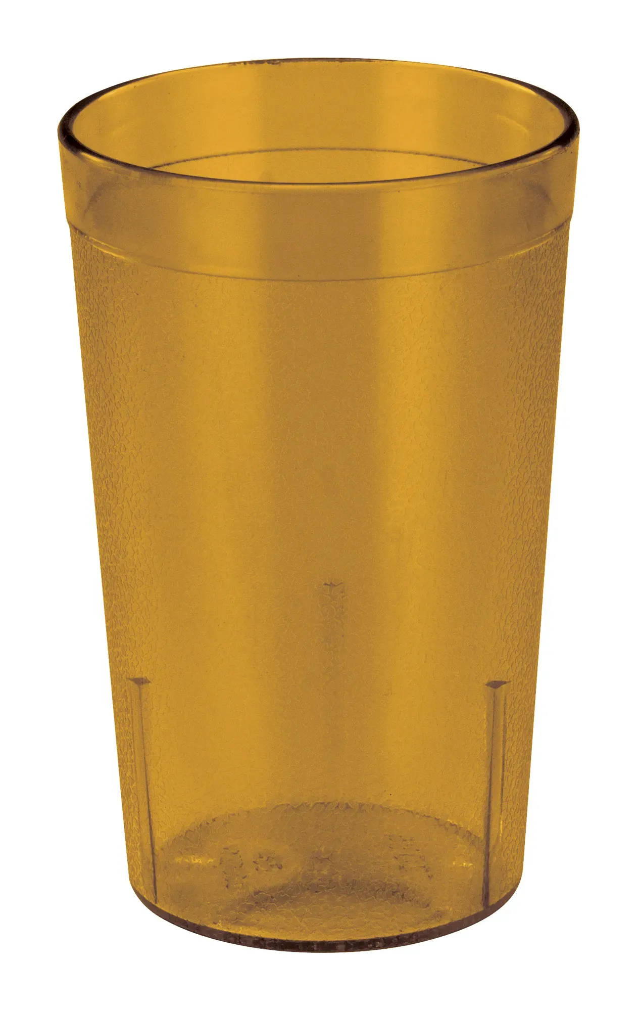 Simplify daily tasks with the Winco Tumbler 8 oz. Pebbled Break-Resistant Dishwasher Safe Plastic Amber. This versatile tumbler is designed to meet the rigorous demands of a bustling restaurant environment, ensuring both durability and ease of use.