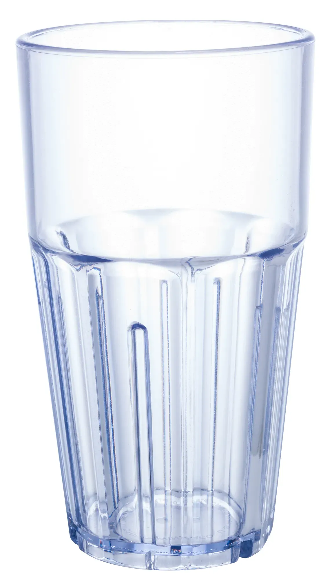 Designed for the modern kitchen with the perfect blend of style and durability, the Havana Tumbler 16 oz. from Winco is an essential addition to any restaurant setting. This ribbed tumbler, model PTSN-16, is crafted from break-resistant SAN plastic, ensuring it can withstand the rigors of daily use in a bustling dining environment.