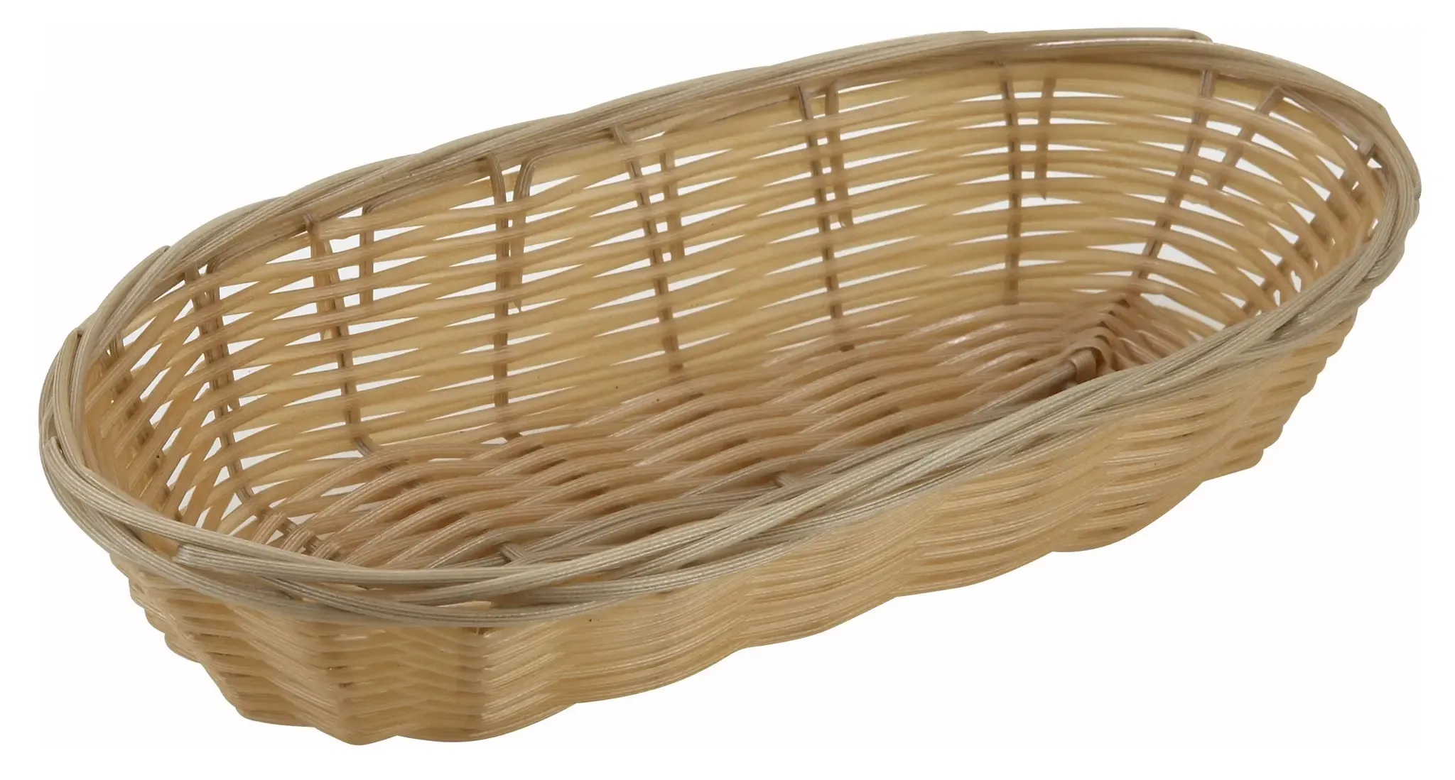 Crafted from durable poly material, these natural-colored woven baskets offer a rustic charm that complements any dining setting. Their sturdy construction ensures they can withstand the rigors of daily use in a busy restaurant environment, while their lightweight design makes them easy to handle and transport.