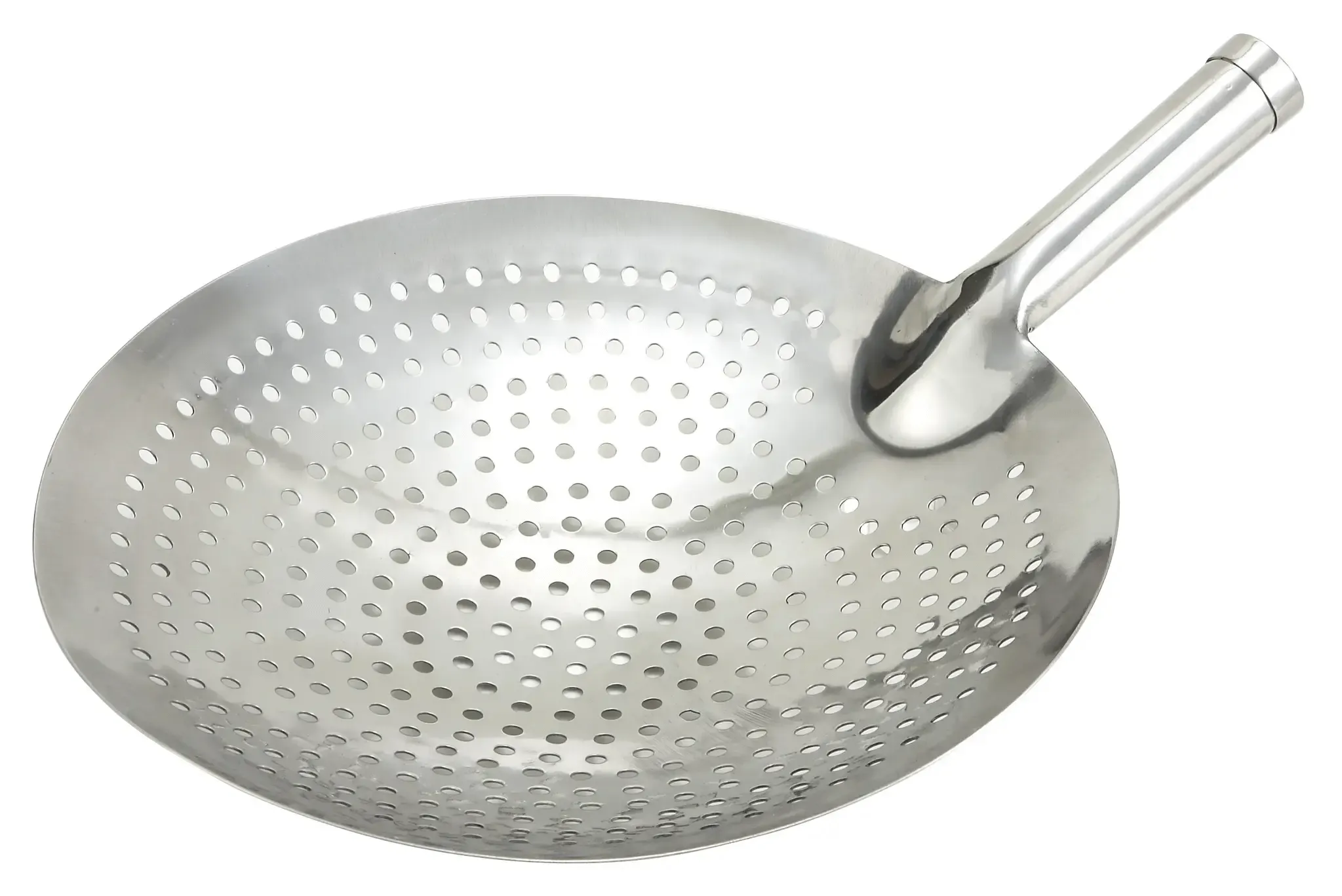 Durable and reliable with a sleek design, the Winco Skimmer SC-12 is an essential tool for any professional kitchen. This skimmer features a 12-inch diameter round perforated stainless steel head, making it perfect for skimming, straining, and lifting foods from hot liquids with ease. The high-quality stainless steel construction ensures longevity and resistance to rust, making it a dependable choice for busy restaurant environments.