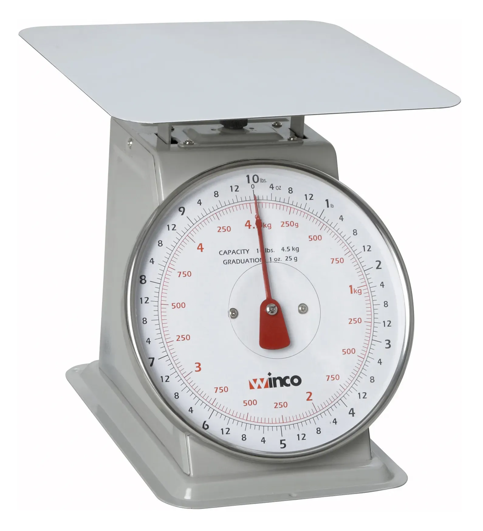 The Winco Receiving Portion Scale features a robust 9-35 steel platform, providing a durable and stable surface for weighing. This sturdy construction is built to withstand the rigors of a busy kitchen, making it a reliable tool for daily use. The painted steel finish not only adds to its durability but also makes it easy to clean, ensuring that it remains hygienic and ready for use at all times.