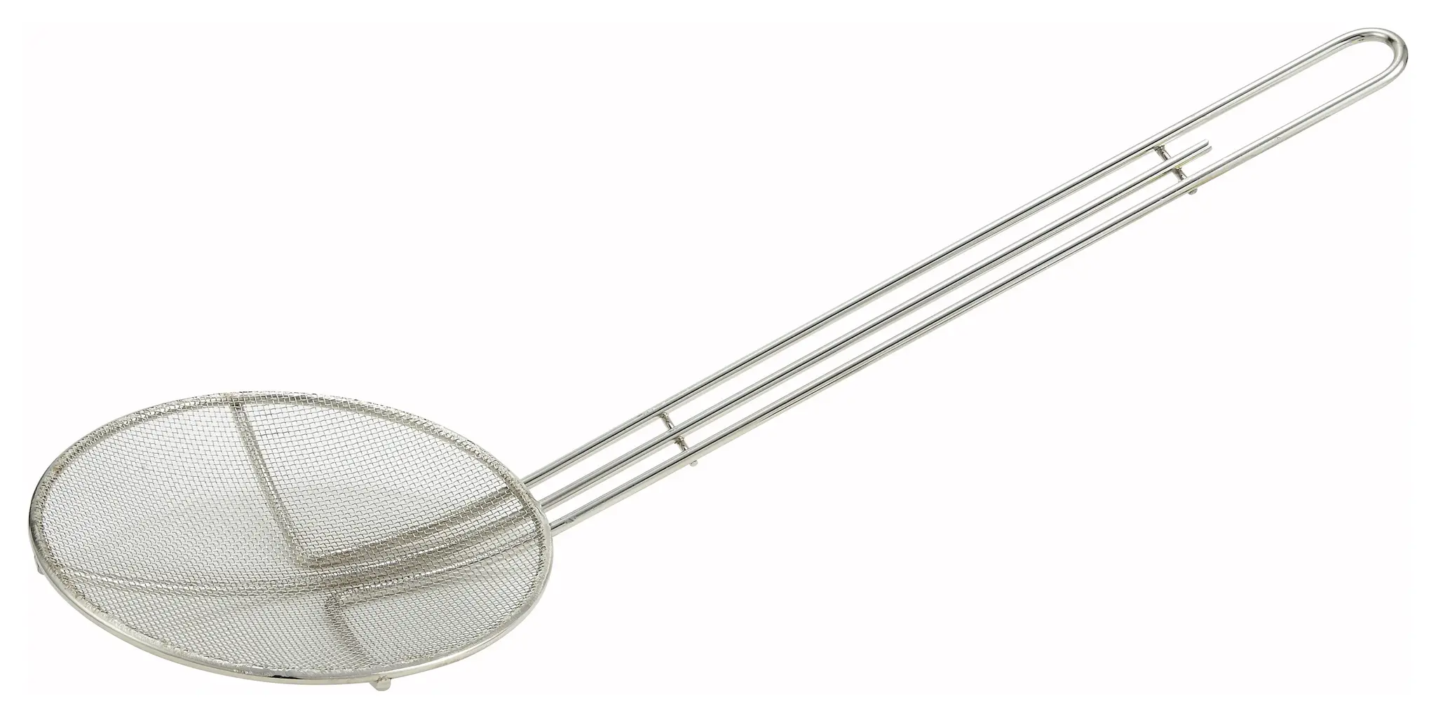 The 13-inch handle provides ample reach, ensuring safety and ease of use, even in deep pots or fryers. Crafted from nickel-plated material, the mesh is not only sturdy but also resistant to rust and corrosion, ensuring longevity and reliable performance in a busy kitchen environment.