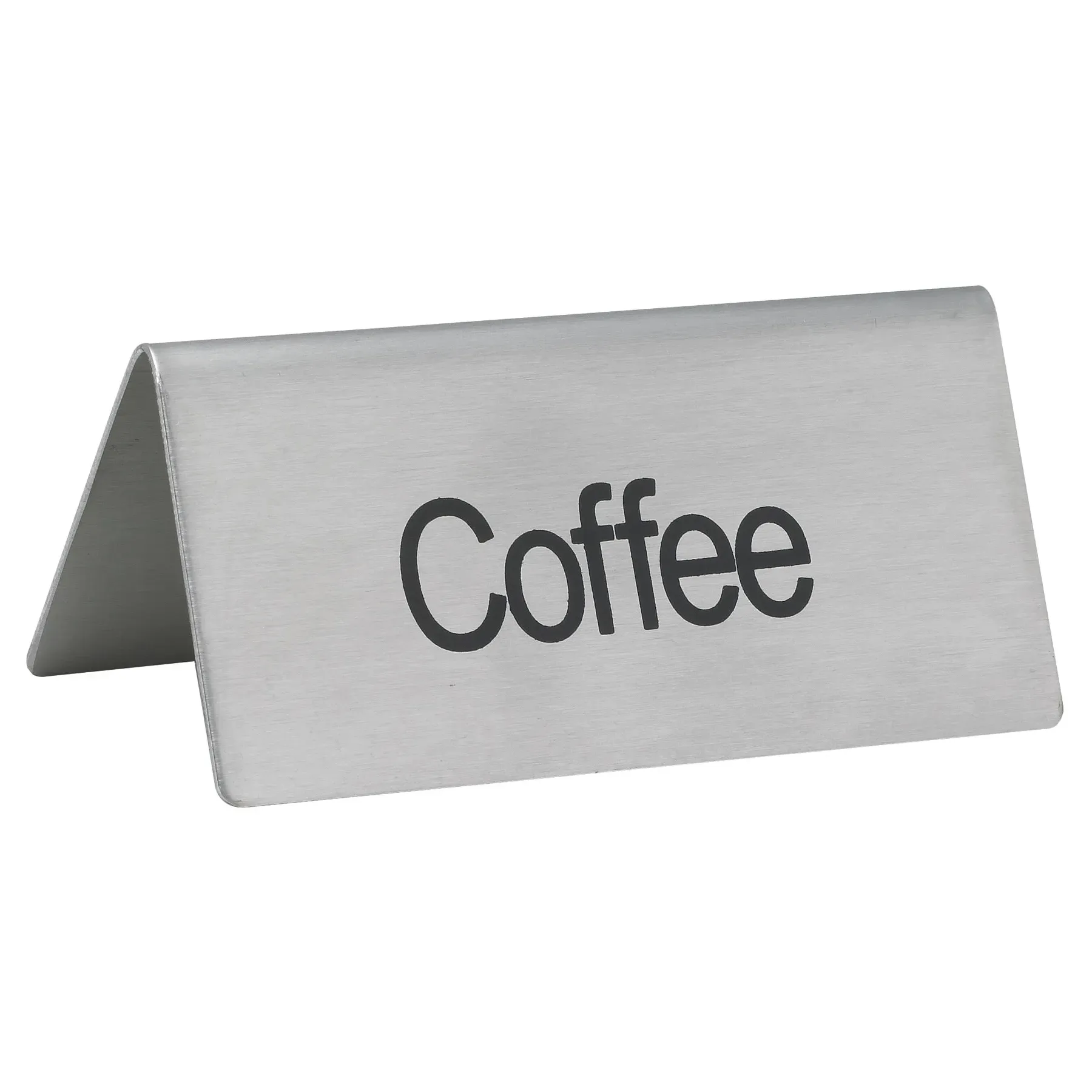 Crafted from high-quality stainless steel, the Winco Beverage Tent Sign Coffee is not only stylish but also built to withstand the rigors of a busy kitchen environment. Its sturdy construction ensures that it remains upright and visible, even in high-traffic areas. The stainless steel material also makes it easy to clean and maintain, ensuring that it always looks pristine and professional.