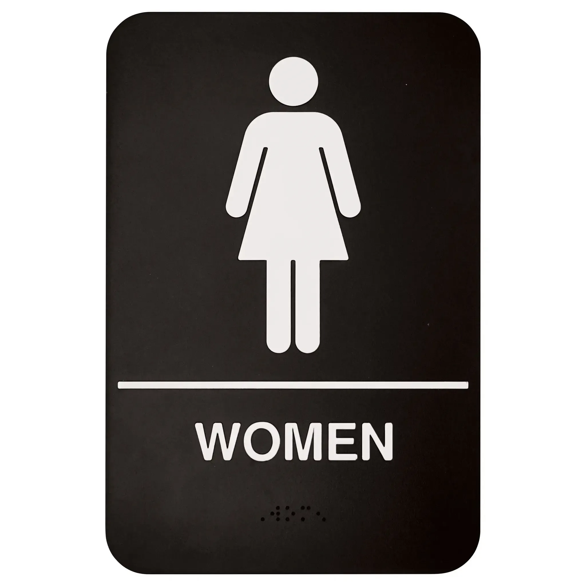Unlock new culinary possibilities with the Winco Women's Restroom Sign. Designed specifically for restaurant settings, this essential sign ensures clear and accessible restroom identification for your female patrons. Measuring 6 x 9 inches, the sign features a white imprint on a black background, providing high contrast for easy visibility. The inclusion of braille ensures compliance with accessibility standards, making your establishment welcoming to all guests.