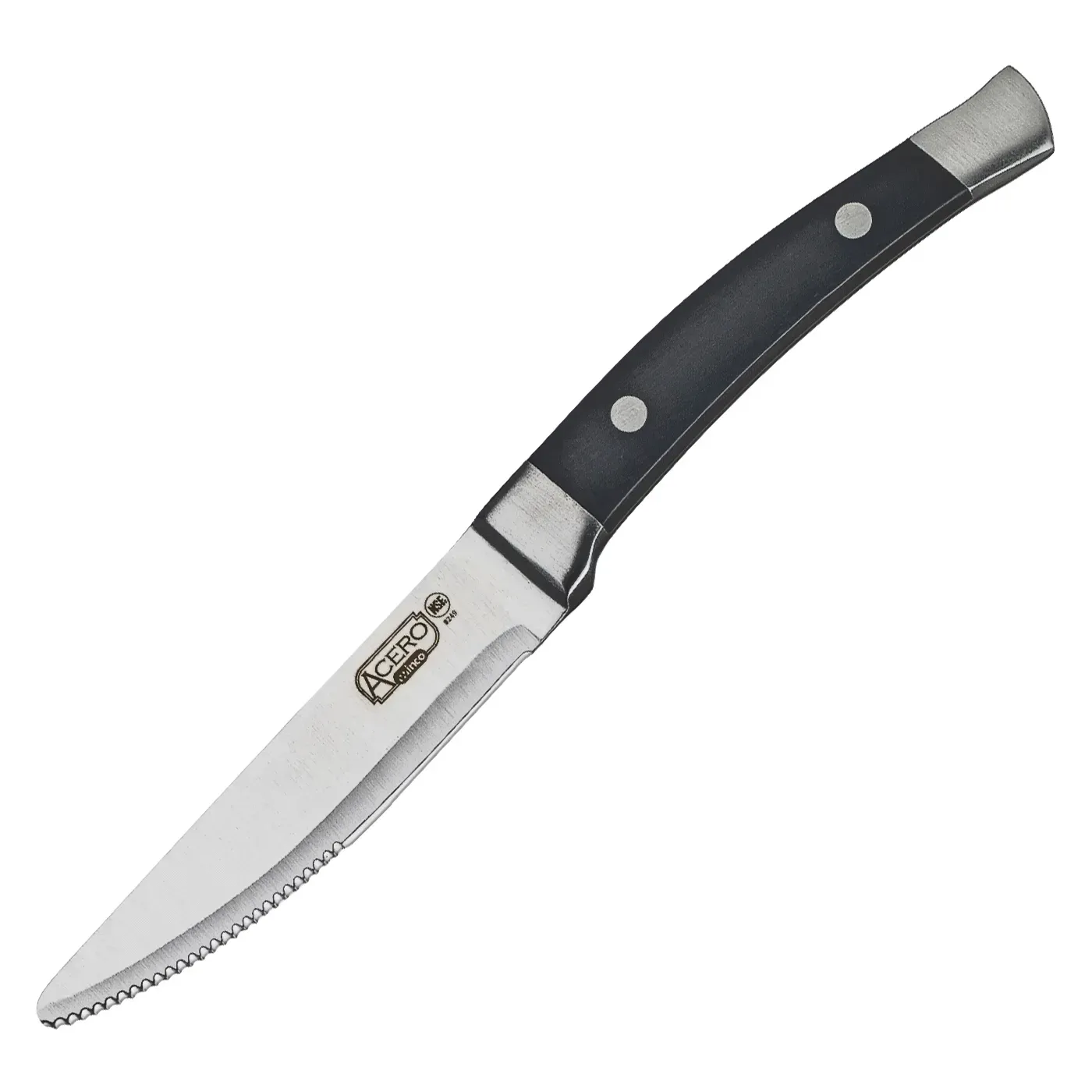 Make every dish extraordinary with the Winco Acero Steak Knife. Designed to elevate your dining experience, this premium steak knife boasts an 11-inch overall length, featuring a 5-inch serrated blade that effortlessly slices through the juiciest cuts of meat. The blade is forged from high-quality stainless steel, ensuring durability and a sharp edge that stands the test of time.