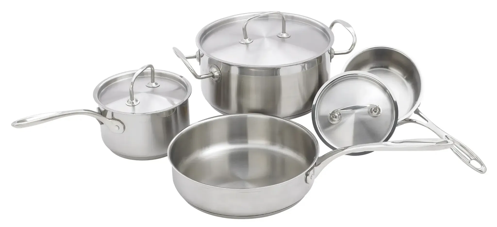 Crafted from extra heavy weight 18/8 stainless steel with an aluminum core, this cookware set ensures even heat distribution and superior durability. The riveted handles provide a secure and comfortable grip, making it easy to maneuver each piece, even when full. The NSF certification guarantees that this set meets the highest standards for public health protection, making it a reliable choice for any professional kitchen.