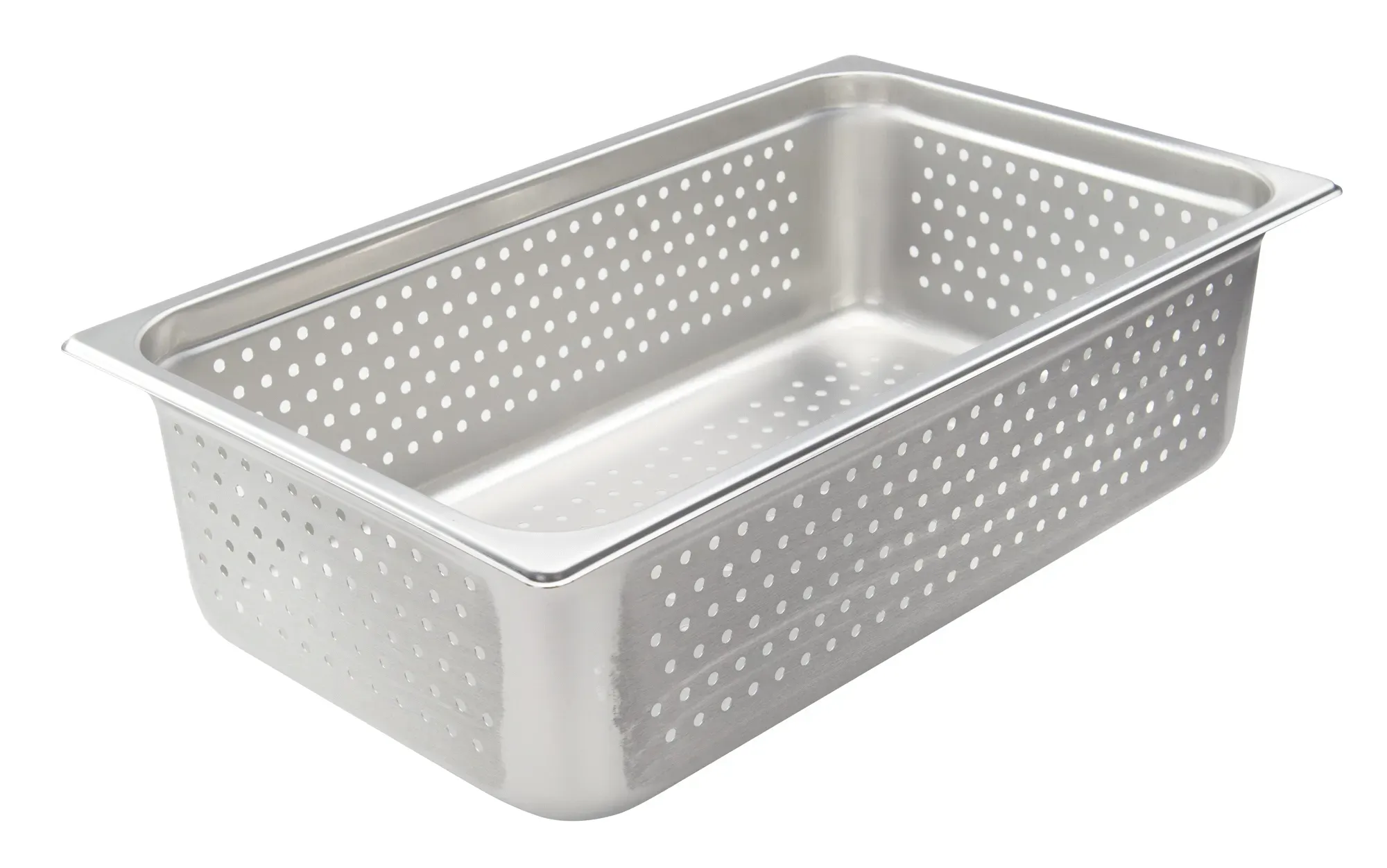 The perforated design of the Winco Steam Table Pan allows for optimal steam circulation, ensuring your food is cooked evenly and retains its moisture and flavor. This feature is particularly beneficial for steaming vegetables, seafood, and other delicate items that require precise cooking conditions. The pan's robust construction means it can withstand high temperatures and frequent use without warping or degrading.