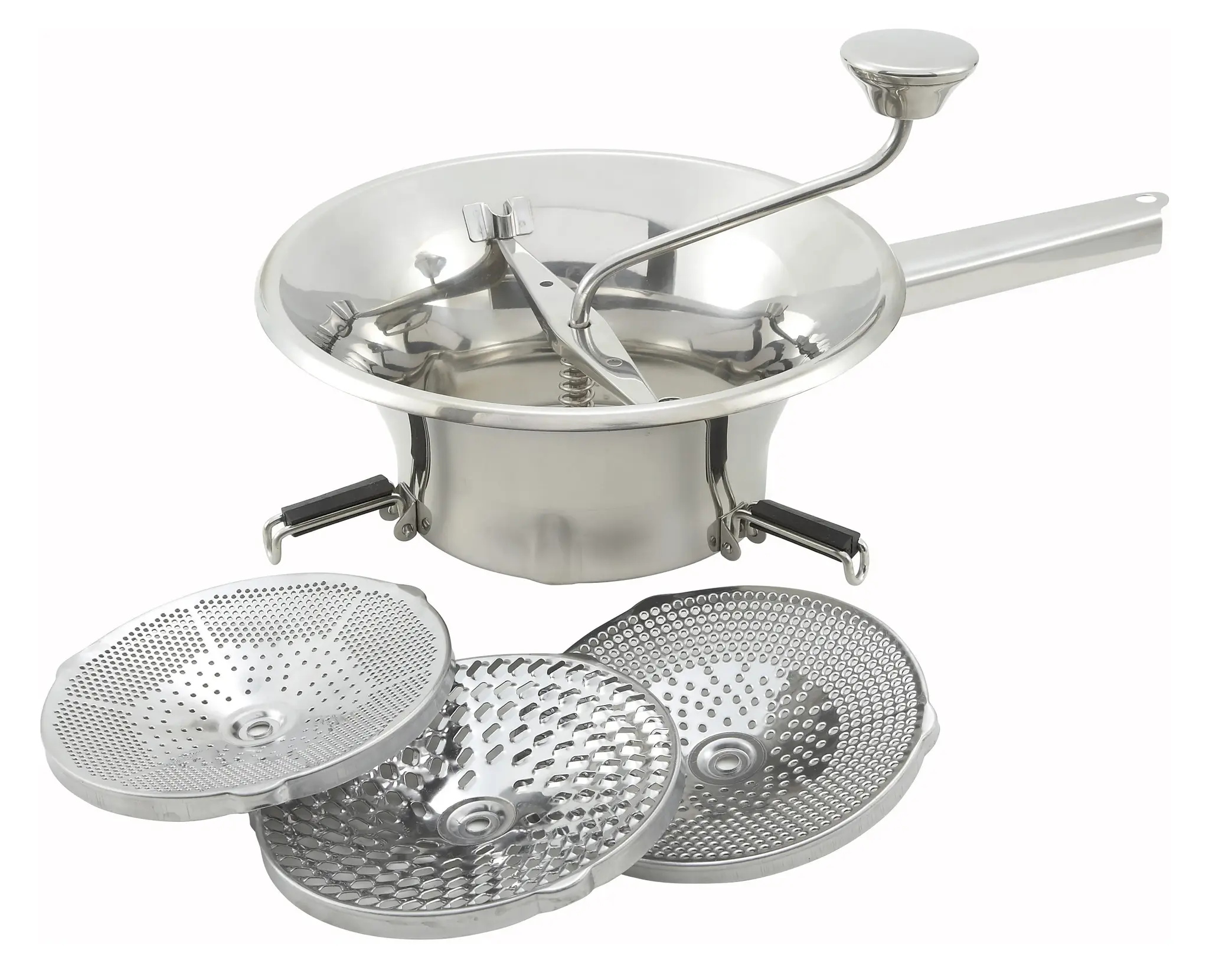 The Winco Food Mill comes equipped with three interchangeable cutting plates, allowing chefs to achieve the perfect consistency for their dishes. Whether you need a fine, medium, or coarse texture, this food mill adapts to your culinary needs, making it perfect for preparing sauces, soups, purees, and more. The medium plate, in particular, is excellent for achieving a smooth yet substantial texture, ideal for a wide range of restaurant recipes.