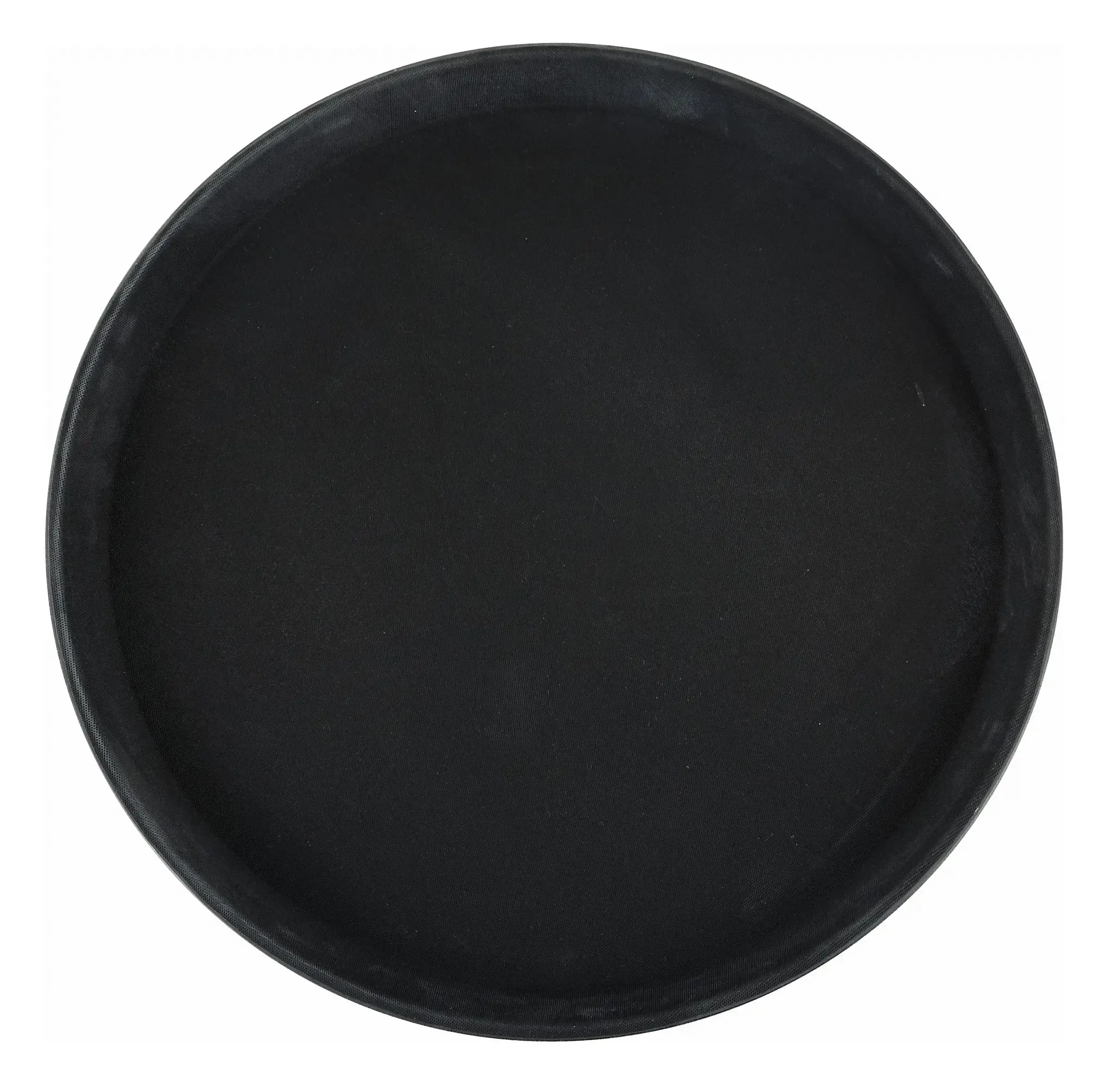 A kitchen essential using the Winco Easy-Hold Tray, this 16-inch diameter round tray is a must-have for any restaurant setting. Crafted from durable plastic and lined with a non-slip rubber surface, this tray ensures that your staff can carry food and beverages with confidence and ease. The sleek black design not only adds a touch of elegance to your service but also meets NSF standards, guaranteeing safety and quality.