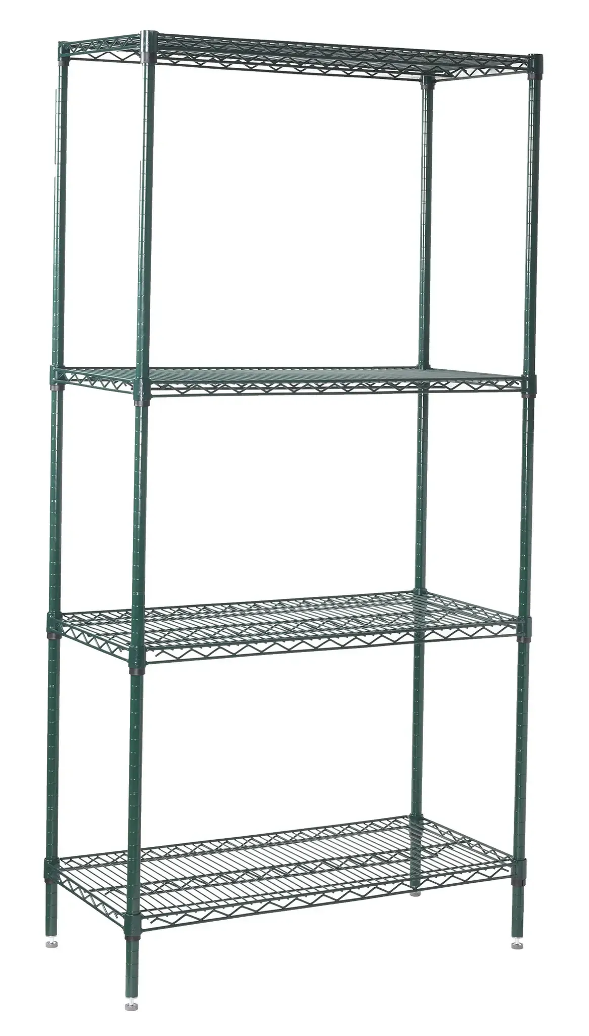 The four-tier design ensures that you can organize your ingredients, utensils, and equipment efficiently, making it easier to maintain a clean and orderly workspace. One of the standout features of this Wire Shelving Set is its epoxy coating, which makes it suitable for all environments, including humid areas. This means you can confidently use it in walk-in coolers, freezers, or any other moisture-prone areas without worrying about rust or corrosion.