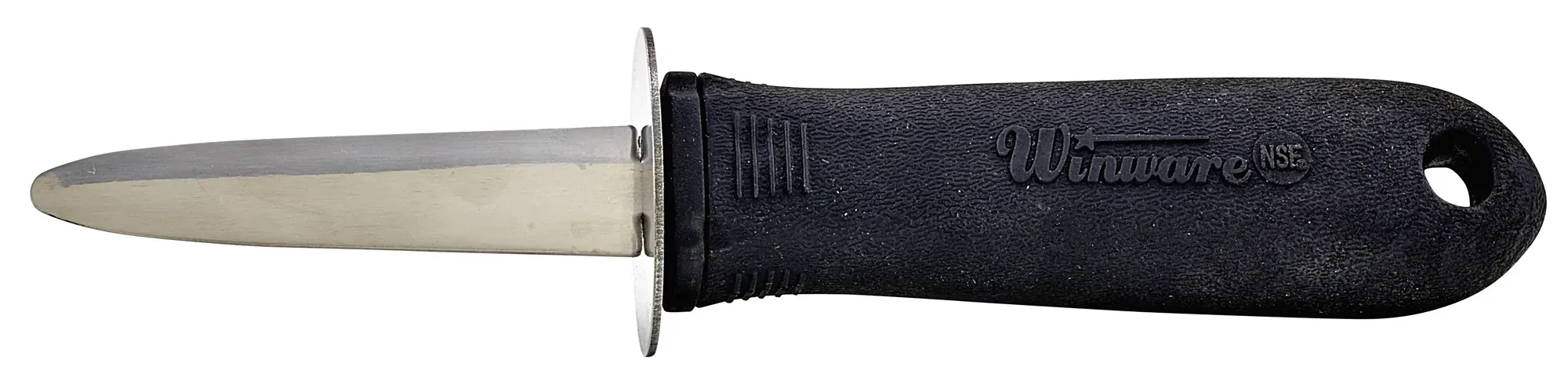 Elevate the kitchen’s functionality with the Winco OysterClam Knife. Designed specifically for the demanding environment of a restaurant kitchen, this knife is an essential tool for any seafood preparation station. The OysterClam Knife boasts a 7-5/8 inch overall length, featuring a 2-7/8 inch blade crafted from high-quality stainless steel. This ensures durability and resistance to corrosion, making it perfect for shucking oysters and clams with ease. The knife's soft grip handle provides superior comfort and control, reducing hand fatigue during extended use. This ergonomic design is particularly beneficial in a busy kitchen where efficiency and safety are paramount. Additionally, the handle is dishwasher safe, ensuring that maintaining hygiene standards is both simple and effective. The sleek black handle not only adds a touch of sophistication to your kitchen tools but also meets NSF standards, guaranteeing that it adheres to strict public health and safety guidelines. This makes the Winco OysterClam Knife a reliable and professional choice for any restaurant setting. While the model number VP-314 may be useful for inventory and ordering purposes, the standout features of this knife lie in its practical design and robust construction. Whether you are preparing a seafood platter or a gourmet dish, the Winco OysterClam Knife is the perfect addition to your culinary arsenal, ensuring precision and ease in every cut.